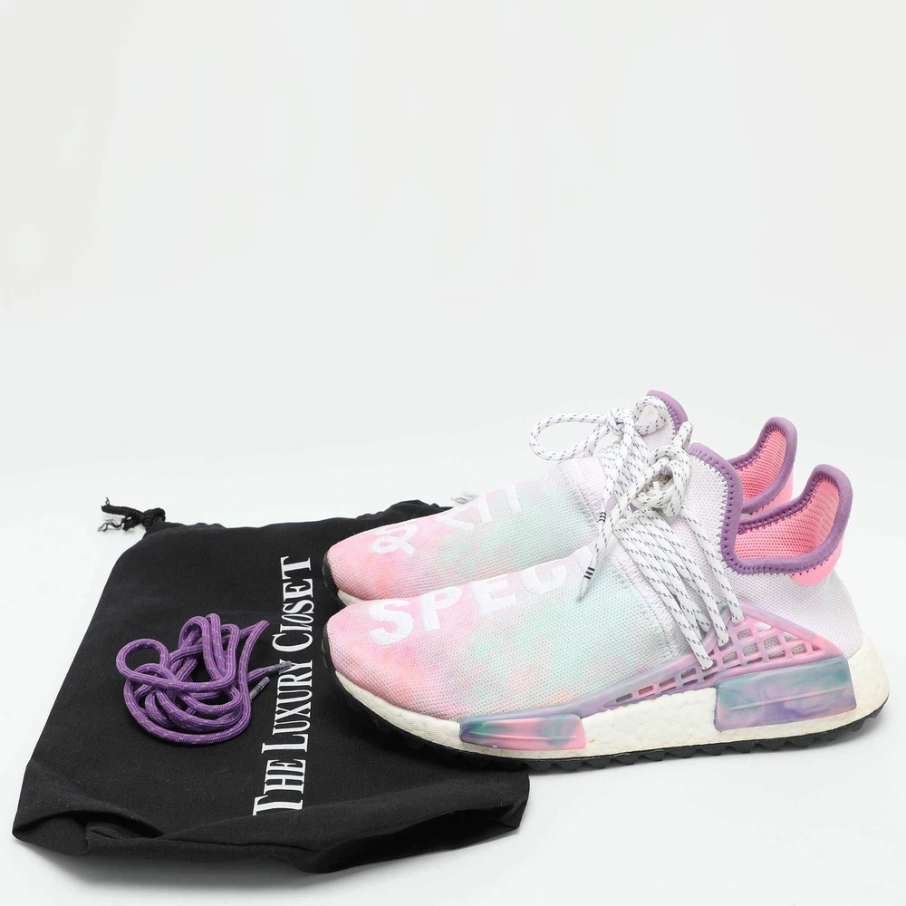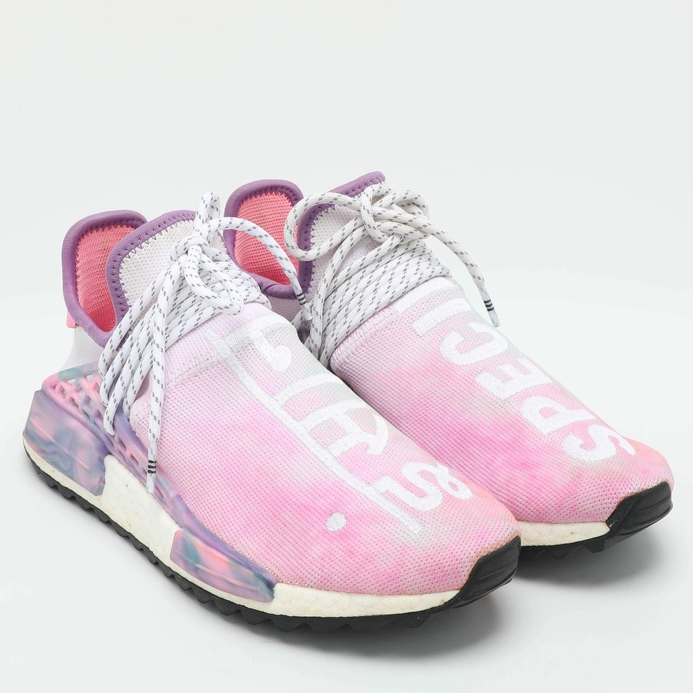Our eBay Store About Us Contact Us Add to Favorite Sellers Pharrell Williams x Adidas Multicolor Knit Fabric Hu NMD Low Top Sneakers Size Experience vibrant style with Pharrell Williams x Adidas Hu NMD sneakers. These low-top kicks feature a multicolor knit fabric that ensures both comfort and eye-catching appeal. With signature detailing and a snug fit, they offer a bold and dynamic addition to any collection. Ideal for those who appreciate creativity and innovation in footwear. Product Details Brand Pharrell Williams Color Multicolor Includes The Luxury Closet Packaging, Extra Lace Outsole Length 29 cm Outsole Width 10 cm Size US 6.5 (EU 39 1/3 /UK 6) Certified by The Luxury Closet This item has gone through a detailed authentication process overseen by our experts. We offer a lifetime guarantee of authenticity on all our items. How We Check The in-house team of experts at The Luxury Closet is highly trained to verify the authenticity and the condition of the luxury products. They ensure that only 100% authentic items are put on sale.The evaluation process is unique with its own mix of assessment criteria and differs according to the category. Each item is evaluated based on the following combination of hallmarks, hardware, stitching, symmetry, material, craftsmanship, stamping, codes, hologram stickers, and packaging. Our authenticators also check if the items have been modified or amended (e.g., aftermarket diamonds, replaced batteries, repaired bags, etc.) International Buyers Import duties, taxes and charges are not included in the item price. These charges are the buyers responsibility. Please check with your country’s customs office to determine what these additional cost will be prior to buying.