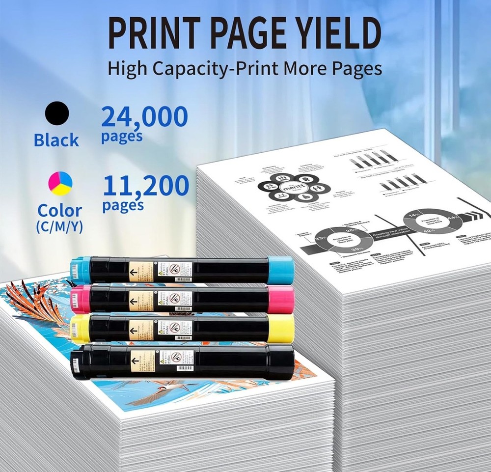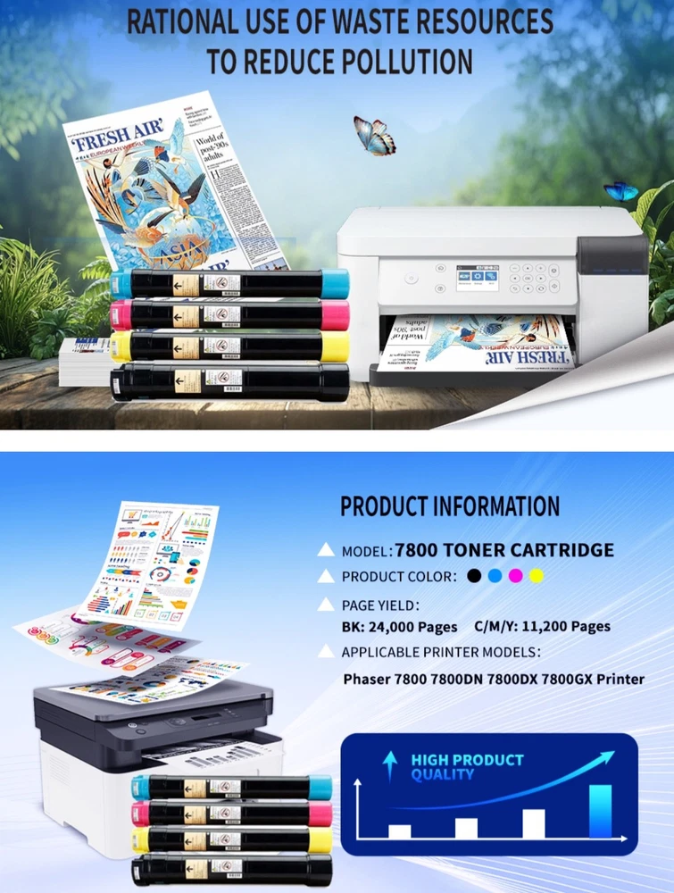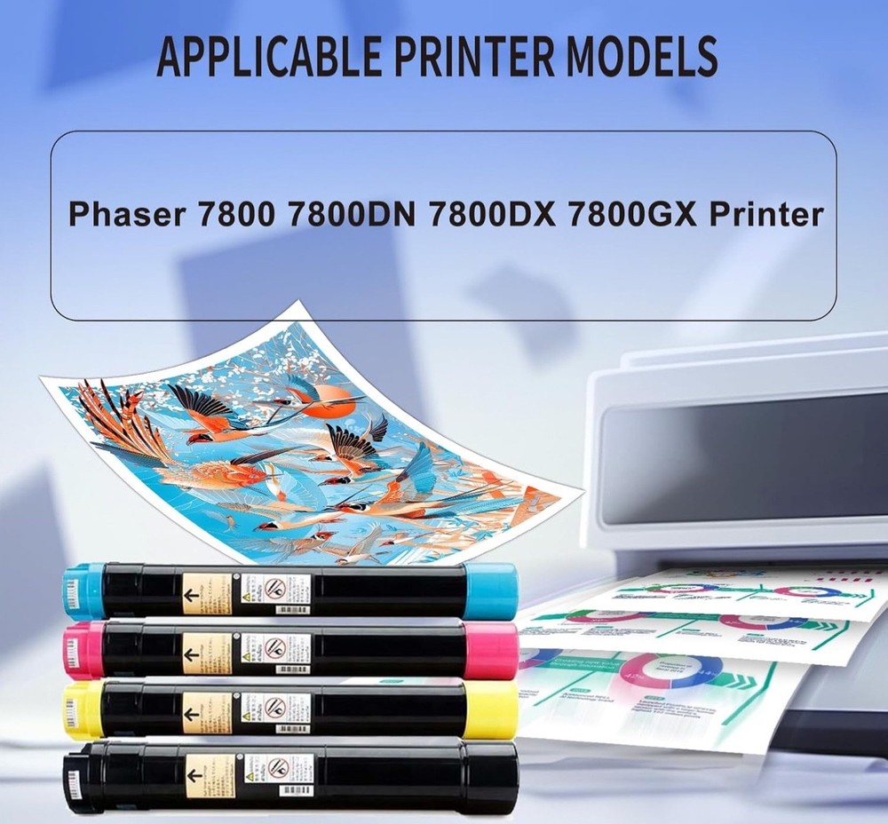 #2540 Phaser 7800 Toner Cartridge 106R01569 106R01566 106R01567 106R01568 Replacement for Xerox Phaser 7800 7800DN 7800DX 7800GX Printer(Black Cyan Magenta Yellow) Brand HOIEAYTON Color Black Cyan Magenta Yellow Included Components Toner Cartridge Compatible Devices Xerox Phaser 7800, 7800DN, 7800DX, 7800GX Compatibility Options Compatible Page Yield 24000 Package Contents:4 Pack Phaser 7800 Toner Cartridges 106R01569 106R01566 106R01567 106R01568 Compatible Printer Model:Xerox Phaser 7800 7800DN 7800DX 7800GX Printers Page Yield: Up to 24,000 pages per 7800 Black toner; 11,200 pages per 7800 cyan magenta yellow toner (Letter/A4, at 5% coverage) Reliable Printing Quality And Performance: HOIEAYTON 7800 toners are tested to the most rigorous quality, deliver superior printing results with vivid colors and clear prints Please ensure that the product is compatible with your printer model before purchasing.If there are any quality issues with our product after purchase,we are always ready to solve the problems What's in the box Toner Cartridge