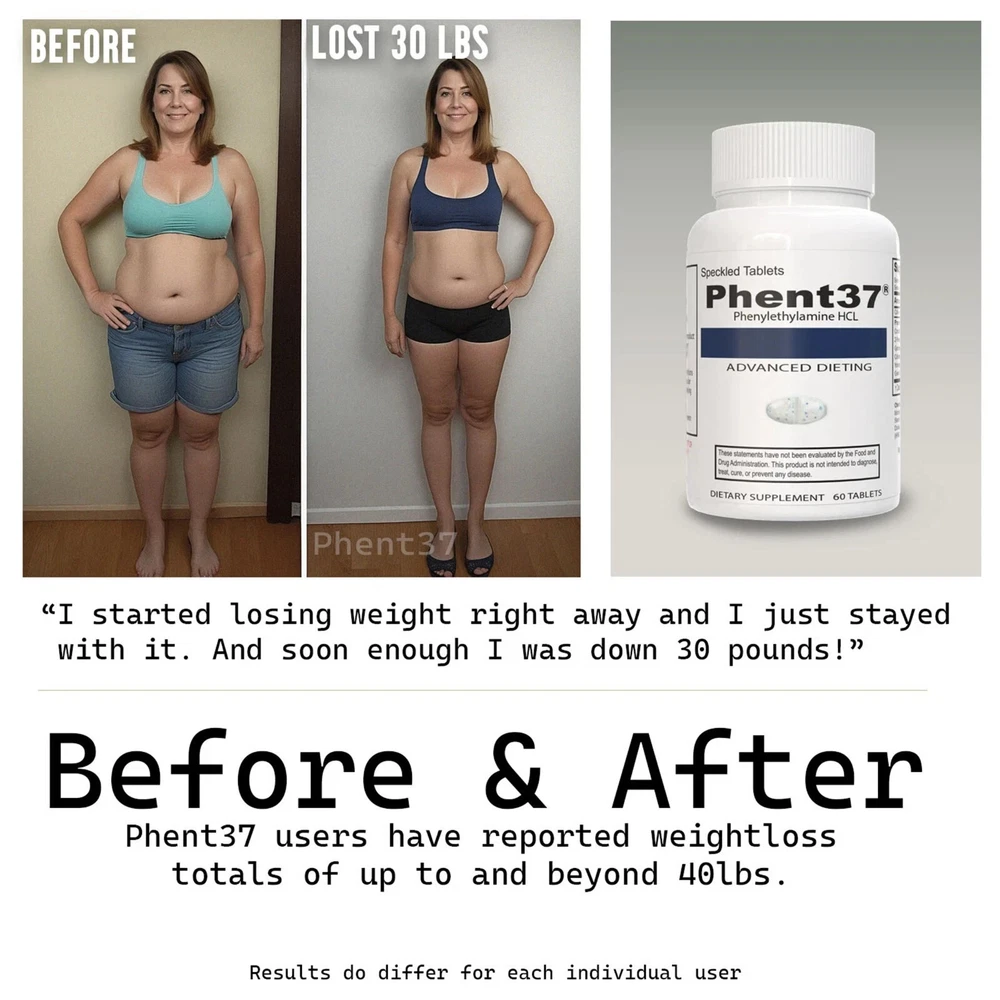 Phent37 Appetite Suppressant and Fat Burner is a powerful nutraceutical designed to help you achieve your weight loss goals. Packing a powerful punch, Phent37 was scientifically designed to suppress appetite, boost metabolism, and enhance fat burning. Whether you're looking to control cravings, increase energy, or accelerate weight loss, Phent37 is the perfect companion for your fitness journey. Key benefits of Phent37 include: Appetite Suppression : Helps curb hunger and cravings, making it easier to stick to your diet and reduce overall calorie intake. Fat Burner : Boosts thermogenesis and promotes the breakdown of fat for enhanced weight loss. Metabolism Boost : Increases your metabolism, allowing your body to burn calories more efficiently, even at rest. Increased Energy : Provides an increased energy boost, helping you stay active and focused throughout the day. Small Speckled Blue and White Tablets : Easy to swallow small speckled tablet but packs a powerful agresive punch! Kill your appetite today!