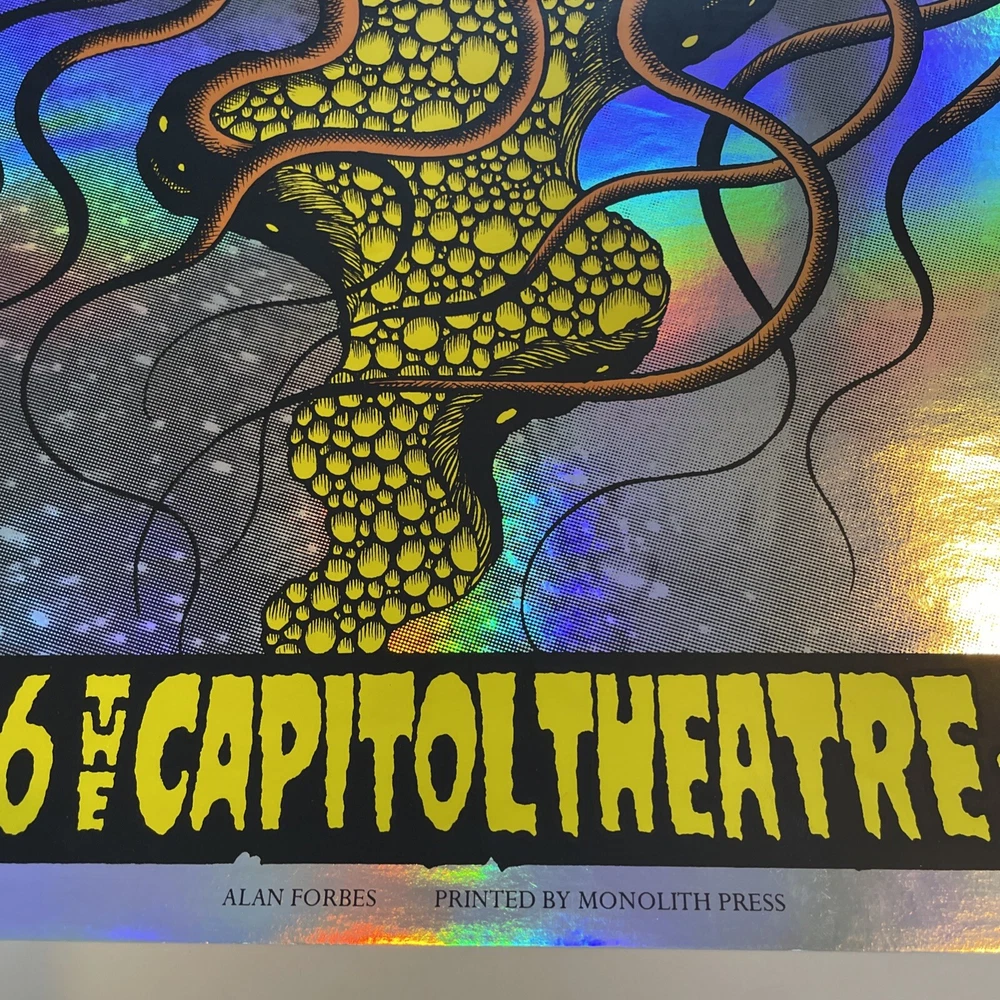 This is a rare and unique poster featuring Phil Lesh & Friends at the Capitol Theatre in New York on October 31st, 2016. The poster showcases the iconic artist and band Grateful Dead, and is a must-have for any music memorabilia collector. The design is vibrant and eye-catching, with bold colors and intricate details that capture the essence of the live performance. This item is perfect for fans of rock and pop music, and is a great addition to any collection of posters or entertainment memorabilia. Top right corner bent . Please look at the pictures for details
