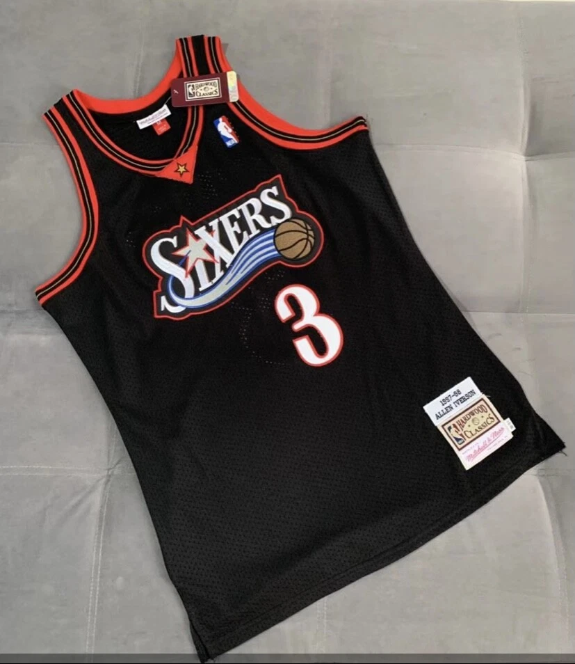 Gender: Boys Product: Jersey Pre & Post Season: Regular Season League: National Basketball Association (NBA) Player: Allen Iverson Color: Black Capacity: 12 oz Team: Philadelphia 76ers Country/Region of Manufacture: China Sport: Basketball