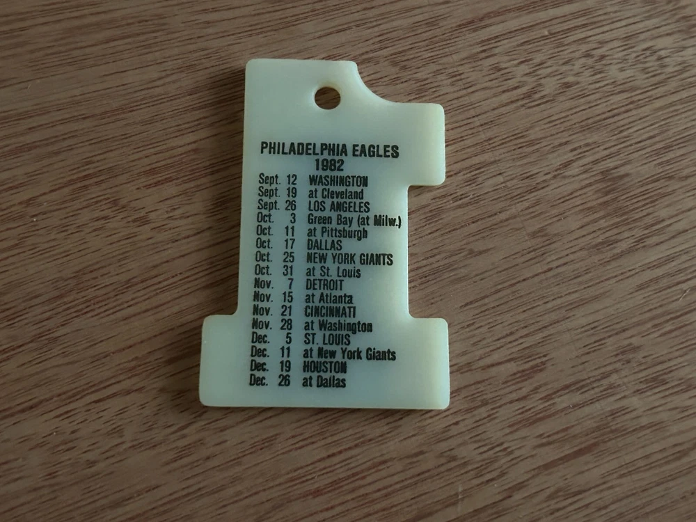 Philadelphia Eagles 1982 Schedule Fob From Keychain Spring House Tavern PA Vtg