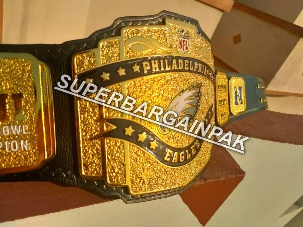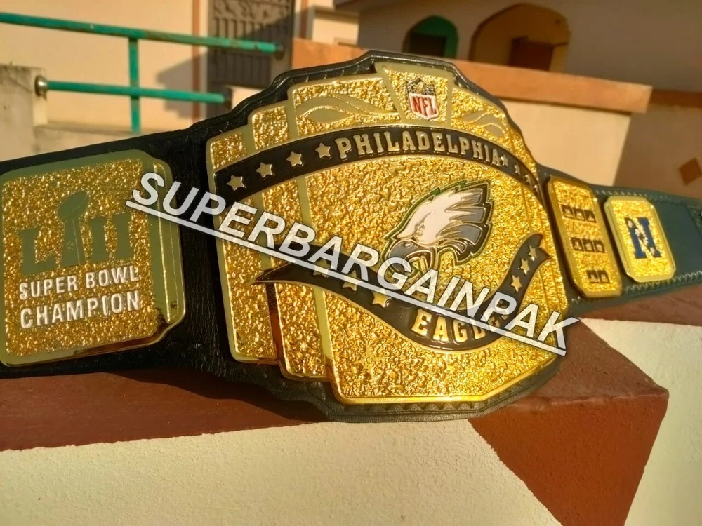 Welcome to our shop ------------------------------------------- We are specialist in manufacturing handmade products:: Our wide range of products include: >>>>Championship Belts WWE | WWF | AEW | UFC | WBC | WCW Product Description ** Philadelphia Eagles championship belt *** Plate Metal: Brass (Zinc available on request with additional cost) Strap: 100% Leather Largest Waist Size: Fits upto 46'' Belt Length: ~50" Weight: 6.17 lbs | 2.81 Kg Plate Thickness: 2mm (4mm Version available on demand with additional cost) ::The belt is well crafted and manufactured to meet the quality demands of fans:: Get your hands on this marvelous piece now! Note: If you need further details kindly inbox us, we will try to be as responsive as possible. ------------------------------------------- Return Policy: Generally we don't have much complains on our products and we make sure to 100% satisfy our clients. We send the product in well Bubble Wrapped packaging so there is highly unlike chance of getting damaged item. In case there is a damage, we will try to give partial refund or you can ask for full refund within 30 days after returning the belt to origin. NOTE: 1. If you have placed the order by mistake or you have purchased a wrong item then we are not going to refund that. 2. Buyer will pay the shipping fee of returning the belt. ------------------------------------------- Happy Shopping! :)