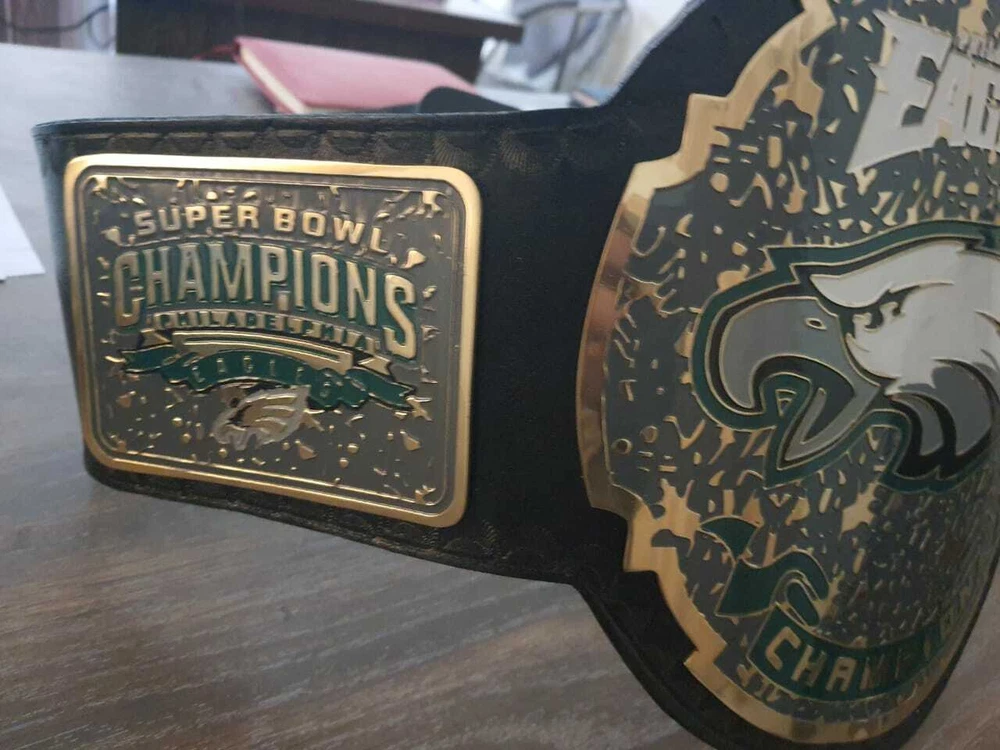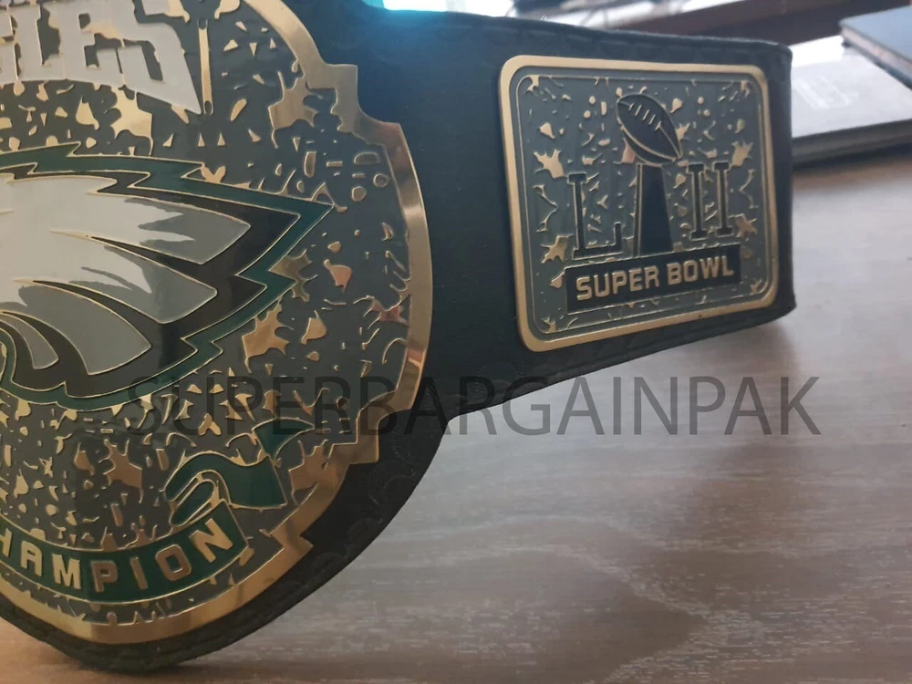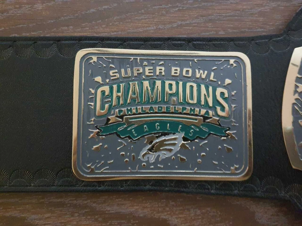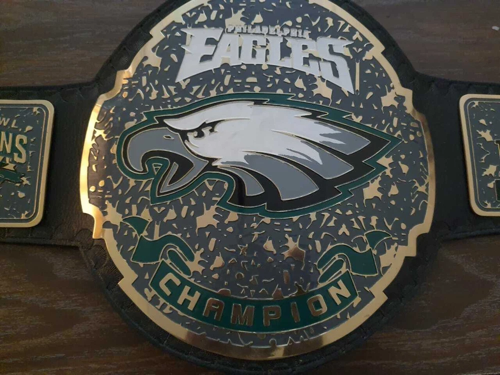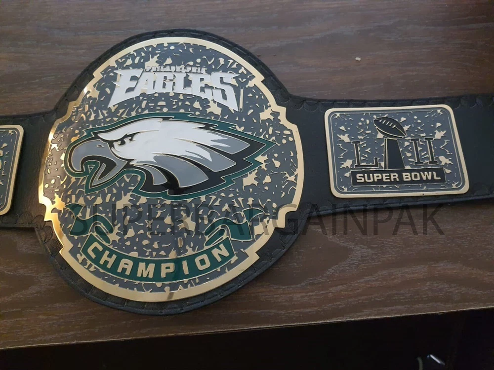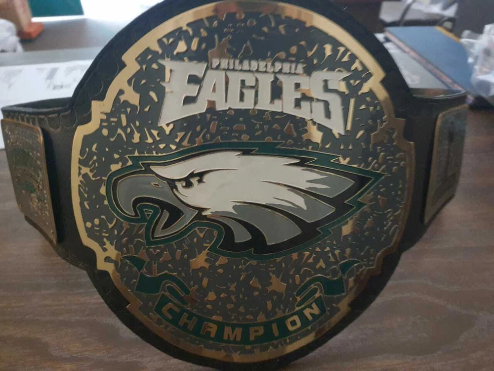 Welcome to our shop ------------------------------------------- We are specialist in manufacturing handmade products:: Our wide range of products include: >>>>Championship Belts WWE | WWF | AEW | UFC | WBC | WCW Product Description ** Philadelphia Eagles championship belt *** Plate Metal: Brass (Zinc available on request with additional cost) Strap: 100% Leather Largest Waist Size: Fits upto 46'' Belt Length: ~50" Weight: 6.17 lbs | 2.81 Kg Plate Thickness: 2mm (4mm Version available on demand with additional cost) ::The belt is well crafted and manufactured to meet the quality demands of fans:: Get your hands on this marvelous piece now! Note: If you need further details kindly inbox us, we will try to be as responsive as possible. ------------------------------------------- Return Policy: Generally we don't have much complains on our products and we make sure to 100% satisfy our clients. We send the product in well Bubble Wrapped packaging so there is highly unlike chance of getting damaged item. In case there is a damage, we will try to give partial refund or you can ask for full refund within 30 days after returning the belt to origin. NOTE: 1. If you have placed the order by mistake or you have purchased a wrong item then we are not going to refund that. 2. Buyer will pay the shipping fee of returning the belt. ------------------------------------------- Happy Shopping! :)