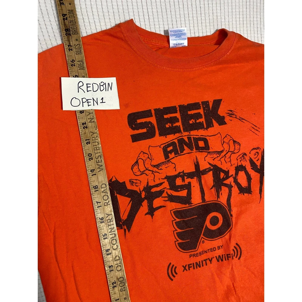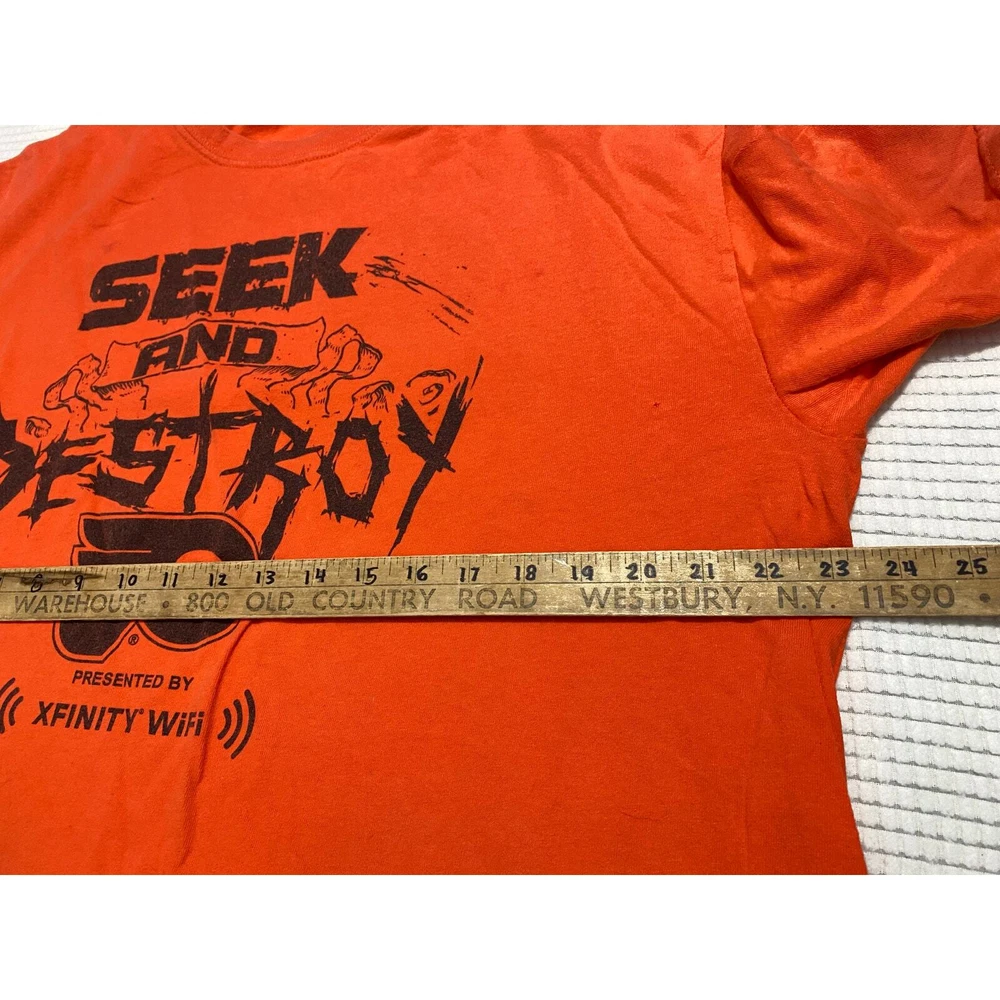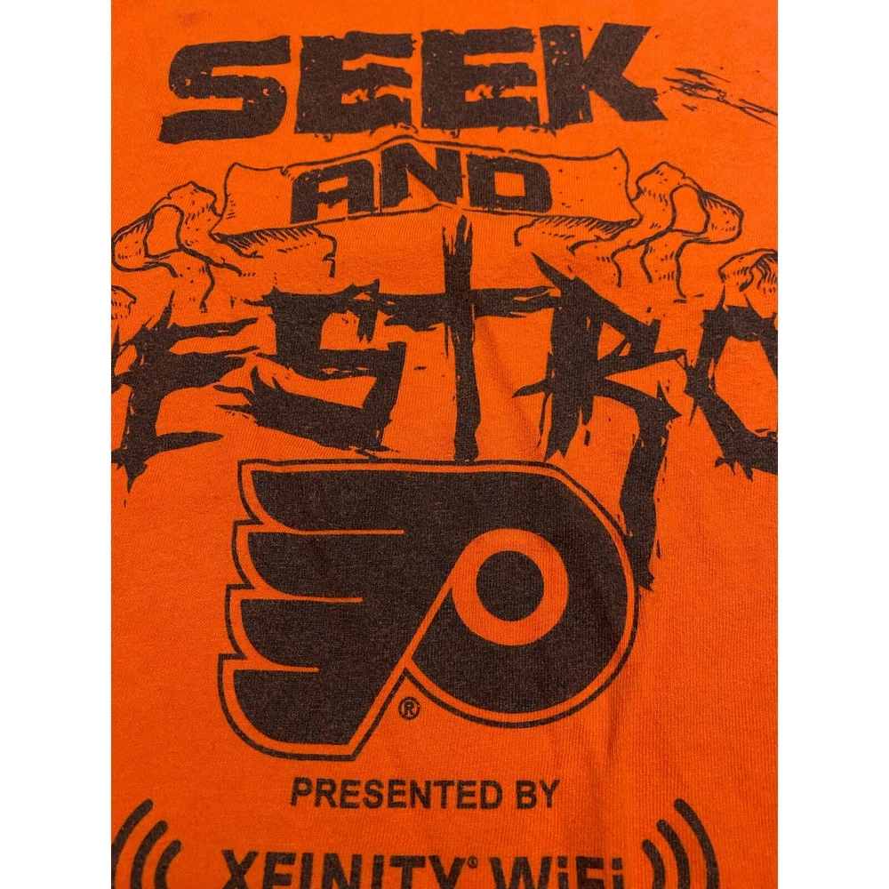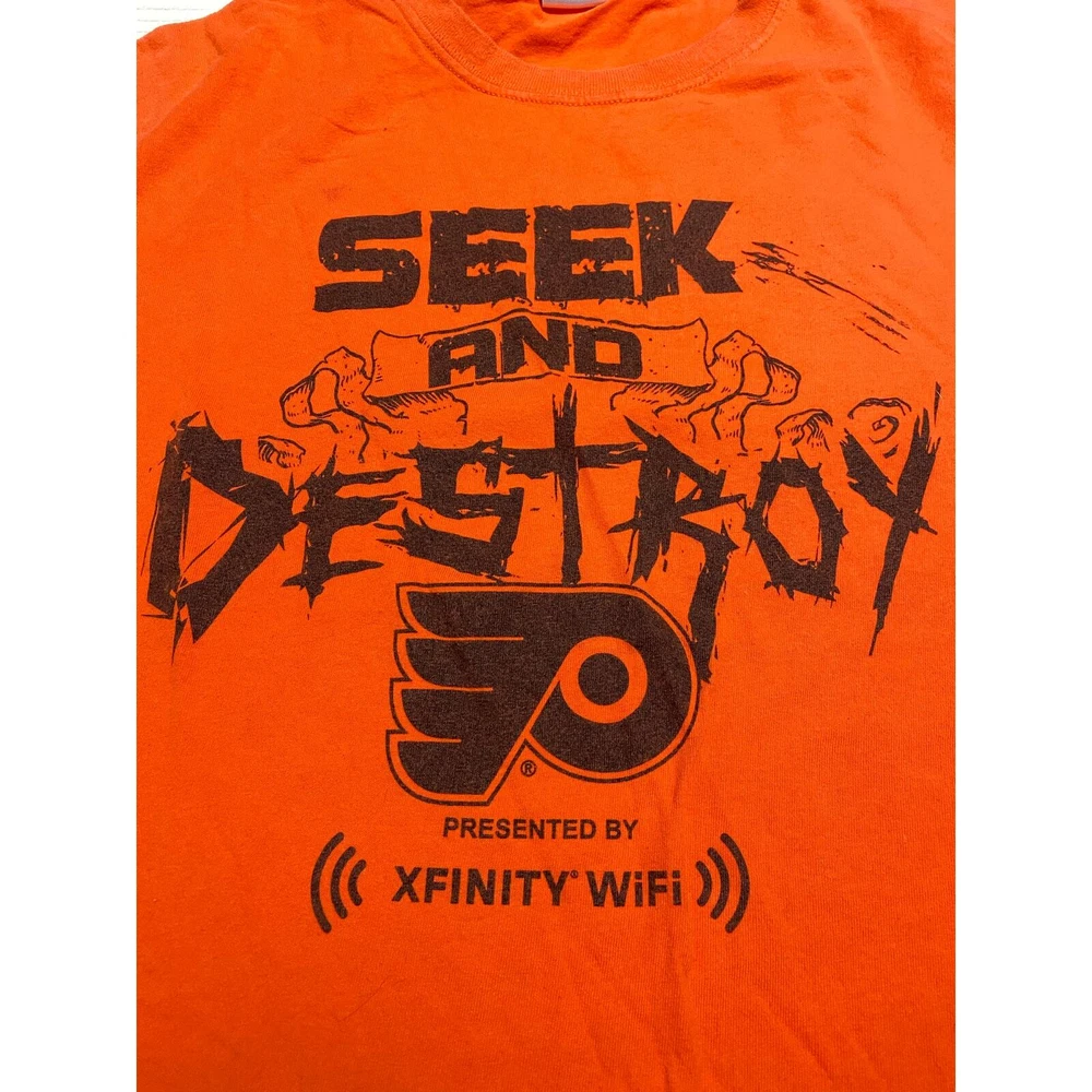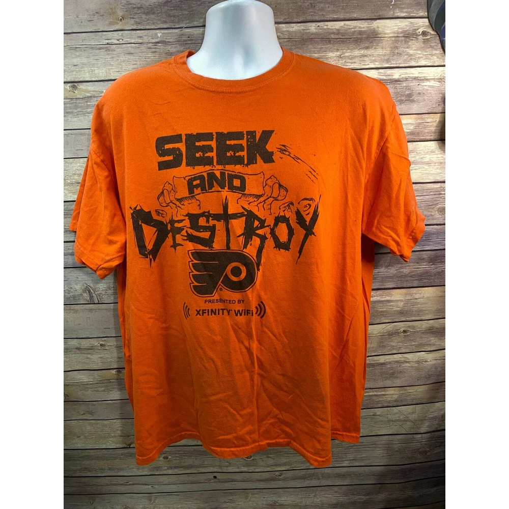 Philadelphia Flyers SEEK & DESTROY Playoff SGA T-shirt SIZE XL Bundle and save= send a message on multiple items and ask for price for ALL!!! - See pictures- If any imperfections are known I try to point them out with a close up picture. Unless vintage clothing I buy new to like new items. #PhiladelphiaFlyers #Flyers #LetsGoFlyers #FlyersNation #FlyersHockey #NHLFlyers #FlyersFans #OrangeAndBlack #HockeyNight #FlyersFamily #FlyersPride #FlyersAlumni #GoFlyersGo #FlyersHive
