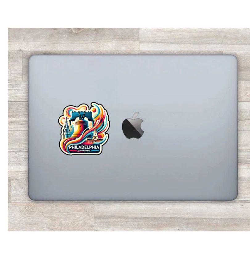Philadelphia Pennsylvania Laptop Sticker Sticker measures approximately 3.25 in x 3 in. Makes a great decoration, gift or stocking stuffer. Thank you for looking! **Our stickers are not UV/weatherproof and are not made for outdoor use**