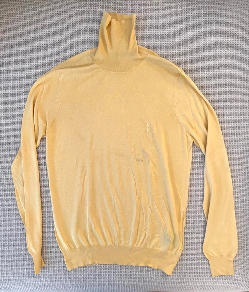 Philipp Plein Billionaire Turtleneck Men's Large 100% Silk Mulberry Yellow Gold.