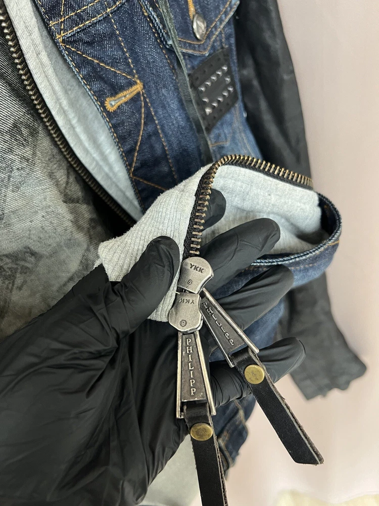 Welcome to my store, for your attention Philipp Plein Denim Jacket Condition: incredibly beautiful jacket , very qualitatively made, jacket is used, so look carefully at the photo, without significant defects (yellow spots and a little dirty leather ). Size: M (be sure to check the measurements) Measurements: Length from neck: 65 cm Shoulder: 47 cm Pit to pit: 54 cm Sleeve length from shoulder: 66 cm Worldwide shipping! If you need any other information about shipping, measurements, photos etc. Please contact me on ebay before ordering. I will be glad to help you! RETURN: Only items with defects and stains that were not indicated in the description or in the photo, may be subject to return. Items cannot be returned if they do not fit your size or if you do not see the defects indicated in the photo.(You can always contact me if you have any concerns or questions, and I will be happy to help you). PLEASE CONTACT US BEFORE LEAVING FEEDBACK OR OPENING A CASE