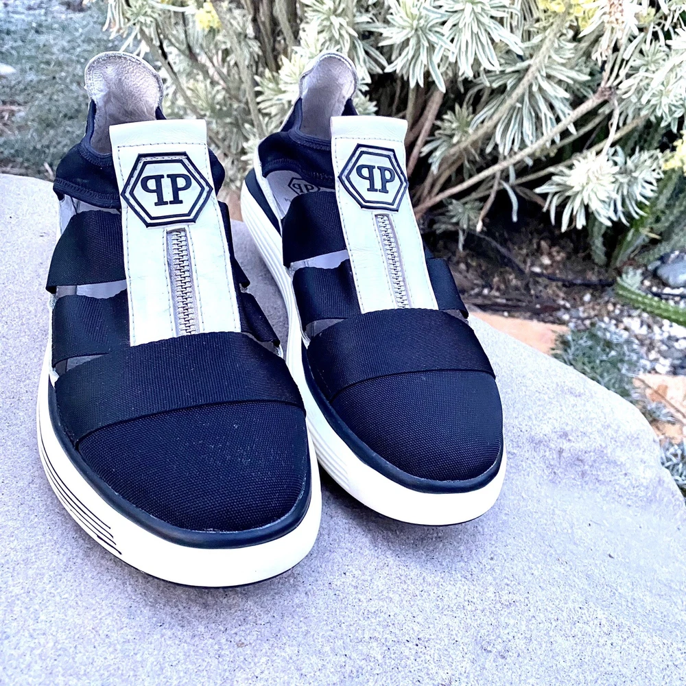 Philipp Plein Fight Club Black White Shoes Men’s 8 Women’s 9.5 Gently used great condition Worn once or twice Non smoking household Very rare Comfort Cushion Grip Support Leather and fabric upper Very rare