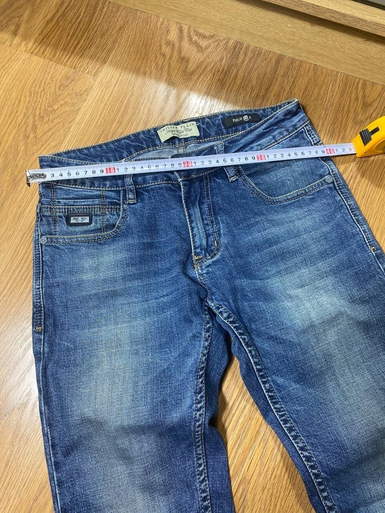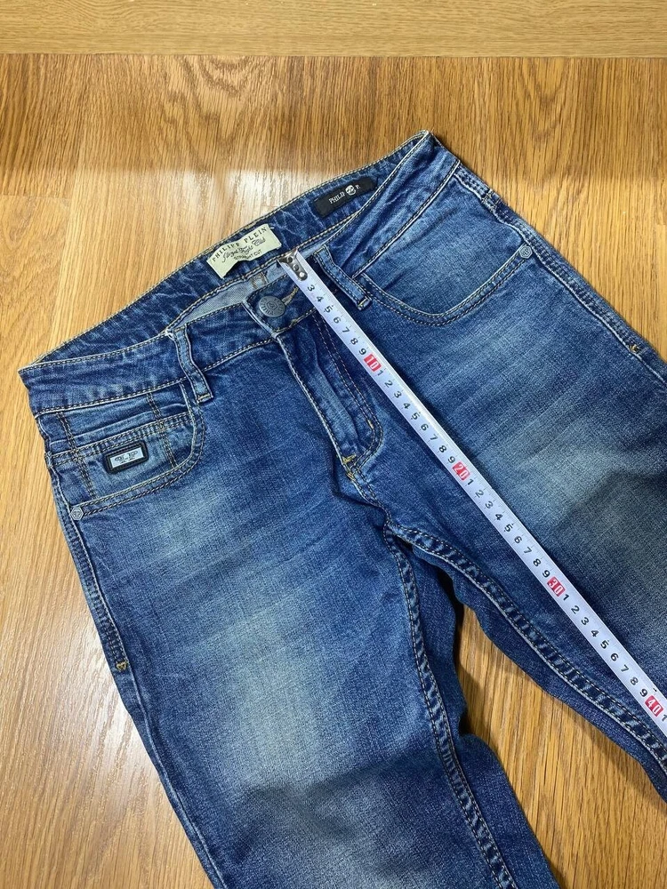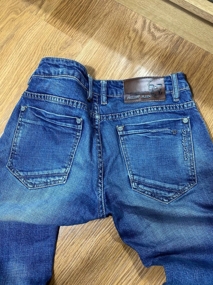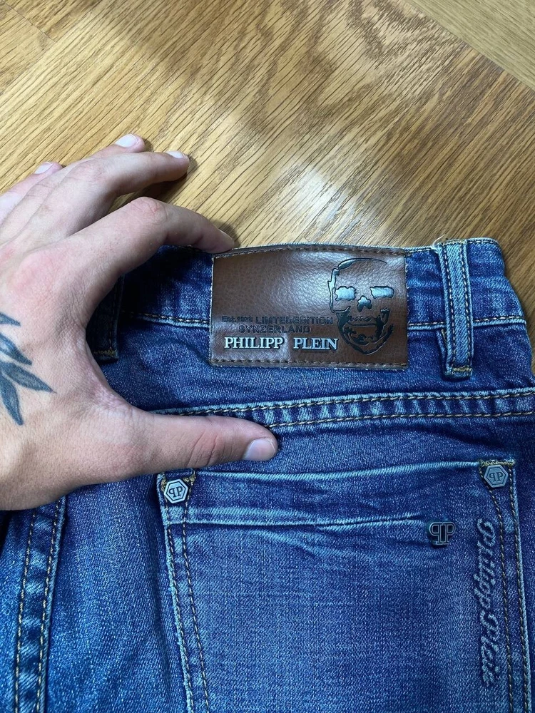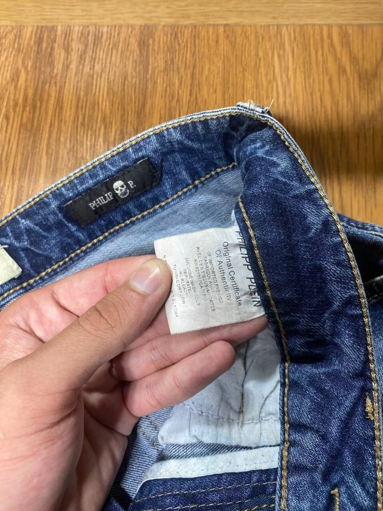 Size Type: Regular Inseam: 28 in Style: Skinny Size: 28 Type: Jeans Accents: Logo, Zipper Department: Men Pocket Type: 5-Pocket Design Closure: Button, Zip Features: Distressed Fit: Slim Fabric Type: Denim Color: Blue Brand: Philipp Plein