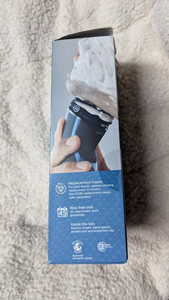Philips Norelco Shaver 3500 Cordless Rechargeable Wet & Dry,S3212/82 Used. Item: Q2(11) 5D Pivot & Flex Heads Enjoy a clean shave that follows your face's contours with 5-directional pivot, flex and floating movements. The head reaches your face at the ideal angle and adjusts to the curves of your face and neck, creating smooth contact with your skin. Get a convenient dry shave or a refreshing wet shave with gel or foam, even in the shower. Wet or dry for a convenient dry or refreshing wet shave ComfortCut Blades engineered to glide smoothly over skin Get a clean shave that's comfortable on your skin. Rounded blade caps shield 27 self-sharpening blades to gently cut hair just above skin level and help the shaver glide smoothly over your skin. Pop-up trimmer for mustache and sideburns. Finish your look with the built-in trimmer. It’s ideal for maintaining your mustache and trimming your sideburns. 60 minutes of cordless shaving from a 1-hour charge Shave for up to 60 minutes on a 1-hour charge - that's about 20 shaves - with the powerful Li-ion battery. A 5-minute quick charge gives enough power for one shave. Operates in cordless mode only.