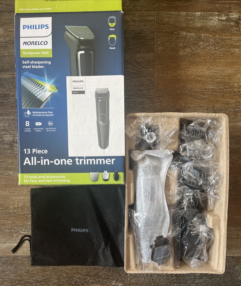 Philips Norelco Multigroom 3000 All-in-One Trimmer 13 Piece MG3740/40 Black. Open Box- Never Used