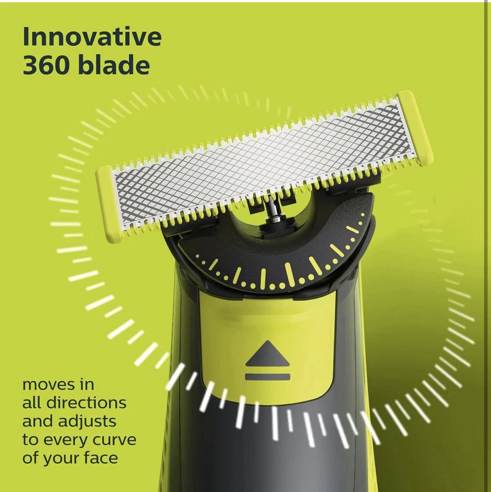Philips Norelco OneBlade 360 Face Hybrid Electric Beard Trimmer QP2724/90 (Q5(7) It’s brand new, open box. OneBlade Technology: the fast-moving cutter (12,000x min) is efficient, even on longer hairs; the dual Protection System with glide coating plus rounded tips makes shaving easier and more comfortable Innovative 360 Blade: it can flex in all directions to enable constant skin contact and control; easily trim and shave, even the most difficult-to-reach areas with fewer passes and greater comfort¹ Designed to cut hair not skin: trim your beard to an even stubble length with the 5in1 comb (1-5mm), create precise edges thanks to the dual-sided blade, and shave off any length of hair easily Easy grooming anywhere: take it in the shower and use wet or dry; 45-minute battery with USB charging and compact handle make it the perfect travel companion The set includes: 1x Philips Norelco OneBlade 360, 1x 360 Blade, 1x 5in1 adjustable comb (1-5mm), 1x protection cap, 1x USB-A charging cable, a user manual (power adapter not included)
