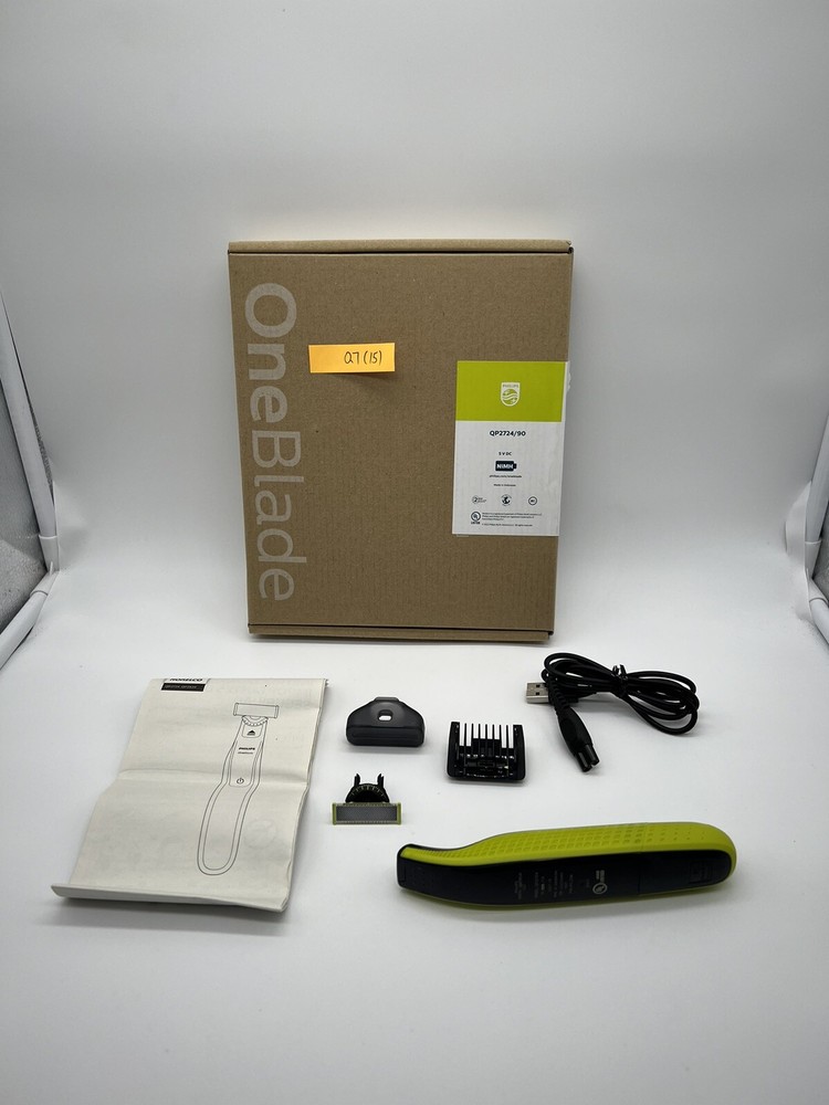 Philips Norelco OneBlade 360 Face Hybrid Electric Beard Trimmer QP2724/90 (Q7(15) It’s brand new, open box. OneBlade Technology: the fast-moving cutter (12,000x min) is efficient, even on longer hairs; the dual Protection System with glide coating plus rounded tips makes shaving easier and more comfortable Innovative 360 Blade: it can flex in all directions to enable constant skin contact and control; easily trim and shave, even the most difficult-to-reach areas with fewer passes and greater comfort¹ Designed to cut hair not skin: trim your beard to an even stubble length with the 5in1 comb (1-5mm), create precise edges thanks to the dual-sided blade, and shave off any length of hair easily Easy grooming anywhere: take it in the shower and use wet or dry; 45-minute battery with USB charging and compact handle make it the perfect travel companion The set includes: 1x Philips Norelco OneBlade 360, 1x 360 Blade, 1x 5in1 adjustable comb (1-5mm), 1x protection cap, 1x USB-A charging cable, a user manual (power adapter not included)