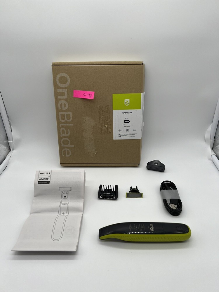 Philips Norelco OneBlade 360 Face Hybrid Electric Beard Trimmer QP2724/90 (S2(8) It’s brand new, open box. OneBlade Technology: the fast-moving cutter (12,000x min) is efficient, even on longer hairs; the dual Protection System with glide coating plus rounded tips makes shaving easier and more comfortable Innovative 360 Blade: it can flex in all directions to enable constant skin contact and control; easily trim and shave, even the most difficult-to-reach areas with fewer passes and greater comfort¹ Designed to cut hair not skin: trim your beard to an even stubble length with the 5in1 comb (1-5mm), create precise edges thanks to the dual-sided blade, and shave off any length of hair easily Easy grooming anywhere: take it in the shower and use wet or dry; 45-minute battery with USB charging and compact handle make it the perfect travel companion The set includes: 1x Philips Norelco OneBlade 360, 1x 360 Blade, 1x 5in1 adjustable comb (1-5mm), 1x protection cap, 1x USB-A charging cable, a user manual (power adapter not included)