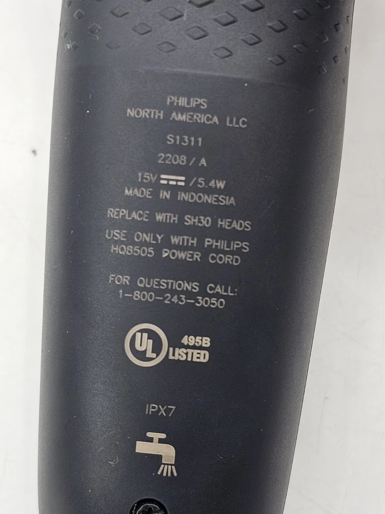 Color: Black/ Blue Brand: Philips Features: Adjustable Speed, Waterproof, Wet/Dry, Wireless Power Source: Battery Country/Region of Manufacture: Indonesia UPC: Does Not Apply Body Area: Face gtin13: Does Not Apply MPN: S1311 Model: Philips Norelco Series 2000 S1311 Department: Men Type: Electric Shaver