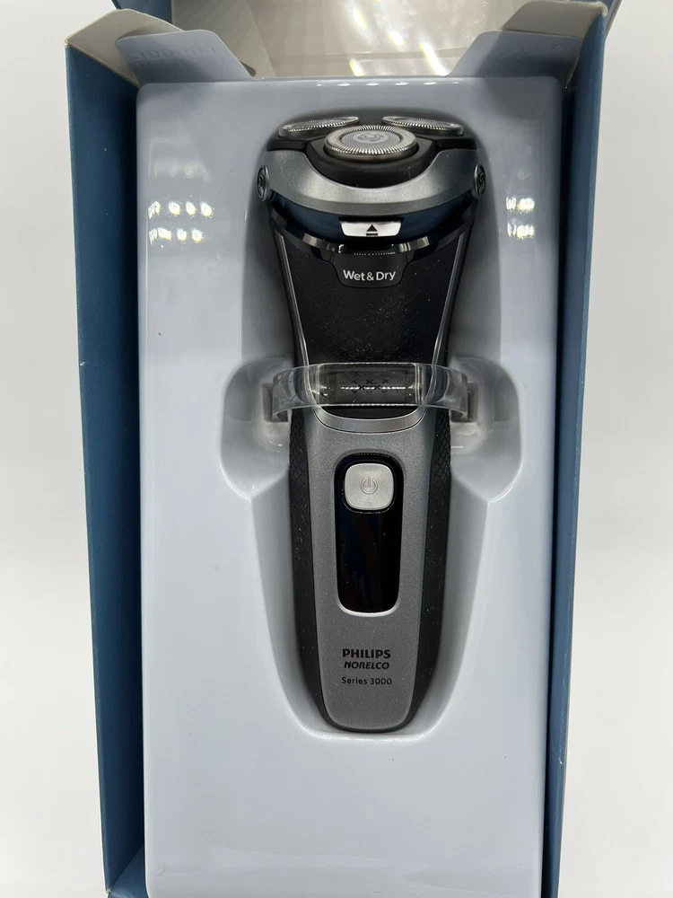 Philips Norelco Shaver 3800 Wet & Dry S3311/85 Used, tested it works. Item: Q2(19) Enjoy a clean shave that follows your face's contours with 5-directional pivot, flex and floating movements. The head reaches your face at the ideal angle and adjusts to the curves of your face and neck, creating smooth contact with your skin. Get a convenient dry shave or a refreshing wet shave with gel or foam, even in the shower. With ComfortCut blades, you get a clean shave that's comfortable on your skin. Rounded caps shield 27 self-sharpening blades to gently cut hair just above skin level and help the shaver glide smoothly over your skin. Finish your look with the built-in pop-up trimmer. It’s ideal for maintaining your mustache and trimming your sideburns. Shave for up to 60 minutes on a 1-hour charge - that's about 20 shaves - with the powerful Li-ion battery. A 5-minute quick charge gives enough power for one shave. Operates in cordless mode only.