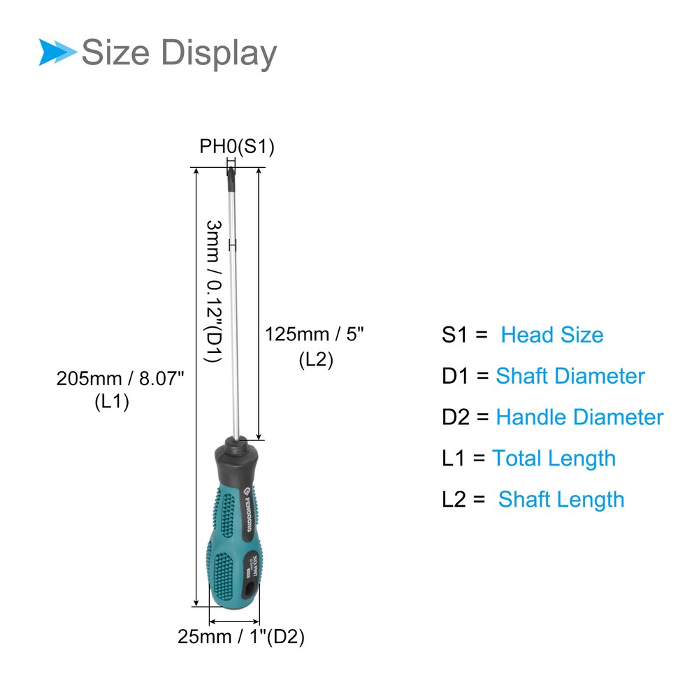 Document Attributes:* Head Size: PH0 (#0)* Shaft Size: 125mm x 3mm / 5" x 0.12" (L*D)* Handle Size: 25mm x 80mm / 1" x 3.15" (Max.D*L)* Total Length: 205mm / 8.07"* Material: Chrome Vanadium Steel, PP+TPR* Finish: Chrome PlatedWhat Is Included:* 1 Piece x Cross Head ScrewdriverApplications & Features:--- Suitable for car repair, DIY hand-making, home improvement, and most general repairs.--- The shaft is constructed from chrome vanadium steel with quenching treatment for high hardness and good toughness.--- The PP+TPR handle has comfortable hand feeling, ergonomic design and ensure optimal force-transmission.--- Magnetic tips, easy to hold screws. Prevents losing or dropping small screws for optimal handling and fastener control.Useful Tips:--- Don't turn the screws with mismatched sizes to avoid damage to both the screw and the screwdriver. Phillips Screwdriver,0 Cross Head 5"CR-V Steel Round Shaft,for Automotive Repair Attributes: * Head Size: PH0 (#0) * Shaft Size: 125mm x 3mm / 5" x 0.12" (L*D) * Handle Size: 25mm x 80mm / 1" x 3.15" (Max.D*L) * Total Length: 205mm / 8.07" * Material: Chrome Vanadium Steel, PP+TPR * Finish: Chrome Plated What Is Included: * 1 Piece x Cross Head Screwdriver Applications & Features: --- Suitable for car repair, DIY hand-making, home improvement, and most general repairs. --- The shaft is constructed from chrome vanadium steel with quenching treatment for high hardness and good toughness. --- The PP+TPR handle has comfortable hand feeling, ergonomic design and ensure optimal force-transmission. --- Magnetic tips, easy to hold screws. Prevents losing or dropping small screws for optimal handling and fastener control. Useful Tips: --- Don't turn the screws with mismatched sizes to avoid damage to both the screw and the screwdriver. Hot Item Payment 1.We accept eBay payment . 2.Payment must be received within 7 business days of auction closing. Shipping 1.We ship to your eBay or Paypal address. Please make sure your eBay and Paypal address is correct before you pay. 2.Items will be shipped within 1-3 business day when we received payment. 3.Delivery time depends on destination and other factors. Description Policy Phillips Screwdriver,0 Cross Head 5"CR-V Steel Round Shaft,for Automotive Repair Attributes: * Head Size: PH0 (#0) * Shaft Size: 125mm x 3mm / 5" x 0.12" (L*D) * Handle Size: 25mm x 80mm / 1" x 3.15" (Max.D*L) * Total Length: 205mm / 8.07" * Material: Chrome Vanadium Steel, PP+TPR * Finish: Chrome Plated What Is Included: * 1 Piece x Cross Head Screwdriver Applications & Features: --- Suitable for car repair, DIY hand-making, home improvement, and most general repairs. --- The shaft is constructed from chrome vanadium steel with quenching treatment for high hardness and good toughness. --- The PP+TPR handle has comfortable hand feeling, ergonomic design and ensure optimal force-transmission. --- Magnetic tips, easy to hold screws. Prevents losing or dropping small screws for optimal handling and fastener control. Useful Tips: --- Don't turn the screws with mismatched sizes to avoid damage to both the screw and the screwdriver. Hot Item Payment 1.We accept eBay payment . 2.Payment must be received within 7 business days of auction closing. Shipping 1.We ship to your eBay or Paypal address. Please make sure your eBay and Paypal address is correct before you pay. 2.Items will be shipped within 1-3 business day when we received payment. 3.Delivery time depends on destination and other factors.