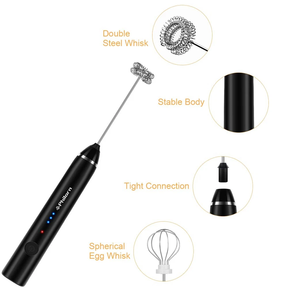 Wel come to my stores!! We offer Free Shipping on all order!! Welcome to my stores!! We offer Free Shipping on all order!! Gallery Philorn Milk Frother Handheld Rechargeable Coffee Frother - Frother Wand with 2 Heads, Electric Whisk Drink Mixer for Coffee, Mini Foamer for Lattes, Cappuccino, Frappe, Matcha, Hot Chocolate-3 Speed Description Description 1 Features 【Trusted quality】 the rechargable milk frother handheld is made of high quality ABS and stainless steel, you can enjoy the happyness of making delicious foamy creamer for your drinks at home with your own milk frother. 【USB Rechargeable】 The Philorn milk frother wand comes with a 18650 battery. It lasts around 4 hours when fully charged. Within 15-20 seconds your milk coffee gets the finest froth by choosing three different speeds. The higher the gear, the shorter the operating time. 【2 Replaceable Stainless Whisks】2 detachable whisk heads are included. The mesh is suitable for a latte, cappuccino, and coffee, and the other model is specific to baking. Easily switch to use, suitable for a variety of kitchen use scenarios. 【Convenient and Quiet】 the drink mixer is suitable for preparing hot/cold chocolate, milk mix drinks, matcha teas and mixed drinks. Turn on the speed and switch it with just one touch. 【Warm Support】 Full 12-month worry-free with 24-hour warm customer service. Just buy and enjoy this superior product with confidence and risk-free! Free Shipping and Free Return 30-Days Money Back Guarantee. Our prices do NOT include any customs duty or tax. For your safety and convenience, we process all payments through PayPal where all major Credit Cards are accepted (Amex, Visa, MasterCard, Discover, etc.). Shipping - We do not ship to a different address. we will ship to the address you provide on the ebay only. Please check your address before purchase. - It should take 2-4 business days for the product to reach your destination. - If the product doesn't reach your destination within the time limit, please give it an additional 1-2 business days in case of postal delays and/or possible technical issues. - We use a selection of shipping services such as UPS, FedEx, USPS etc. - We ship only to the 48 contiguous states of America. We do not ship to Hawaii, Alaska, US Protectorates, APO/FPO addresses. Local pickups are not offered. - If it takes any longer than that, please do not hesitate to contact us to resolve the issues. Return Policy - All our products come with a 30-Day Return Policy. If you would like to return your item and you are within 30 days of the purchase, and it is still in its original condition, you can return the item by contacting us through eBay messaging. - If you are not 100% satisfied, please let us know the Detailed Problem,We will give you a 100% satisfactory solution - If you received an incorrect, damaged, defective, or item not as described, contact us for a partial/full refund or replacement on our cost. - For all returned products, buyers MUST contact us for the returning address. Contact and Other auctions - We back our commitment with superb service, 100% full money back and a customer satisfaction guarantee. - Please remember to give us a positive feedback. - Thank you for your business, your trust and your confidence. It is our pleasure to work with our customers.