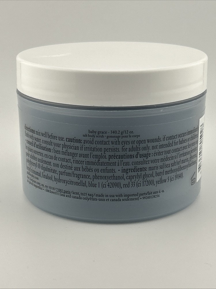 Philosophy Baby Grace Salt Body Scrub – 12oz / 340.2ml – New (Celebration Edition) Indulge in a luxurious exfoliating experience with Philosophy Baby Grace Salt Body Scrub . This Celebration Edition scrub gently buffs away dry, rough skin using mineral-rich salts , leaving your skin soft, smooth, and radiant . Infused with nourishing oils and the delicate, comforting scent of Baby Grace , this scrub provides both exfoliation and hydration for a spa-like treatment at home. Key Features: ✔ Gently exfoliates to remove dead skin cells ✔ Enriched with skin-conditioning oils for added hydration ✔ Soft, powdery Baby Grace fragrance – clean & comforting ✔ Leaves skin feeling silky smooth and refreshed ✔ Perfect for all skin types ✔ Size: 12oz / 340.2ml ✔ Condition: Brand New, Sealed (Limited Celebration Edition) ✨ Fast Shipping & Trusted Seller! Treat yourself or a loved one to this special edition body scrub.