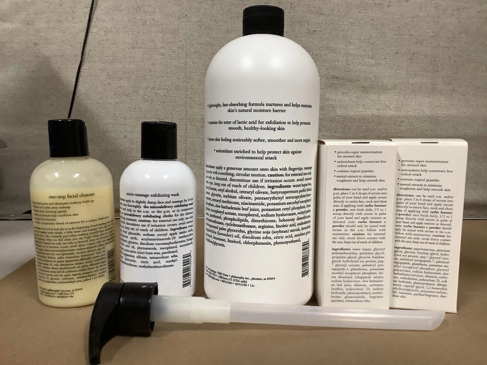 Philosophy lot of 5 all brand new See photos Purity cleanser 8 fl is Micro delivery wash 8 fl oz Hope in a jar for body lotion 32 fl oz Hope is not enough serum 2x 4 fl oz