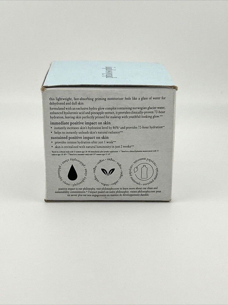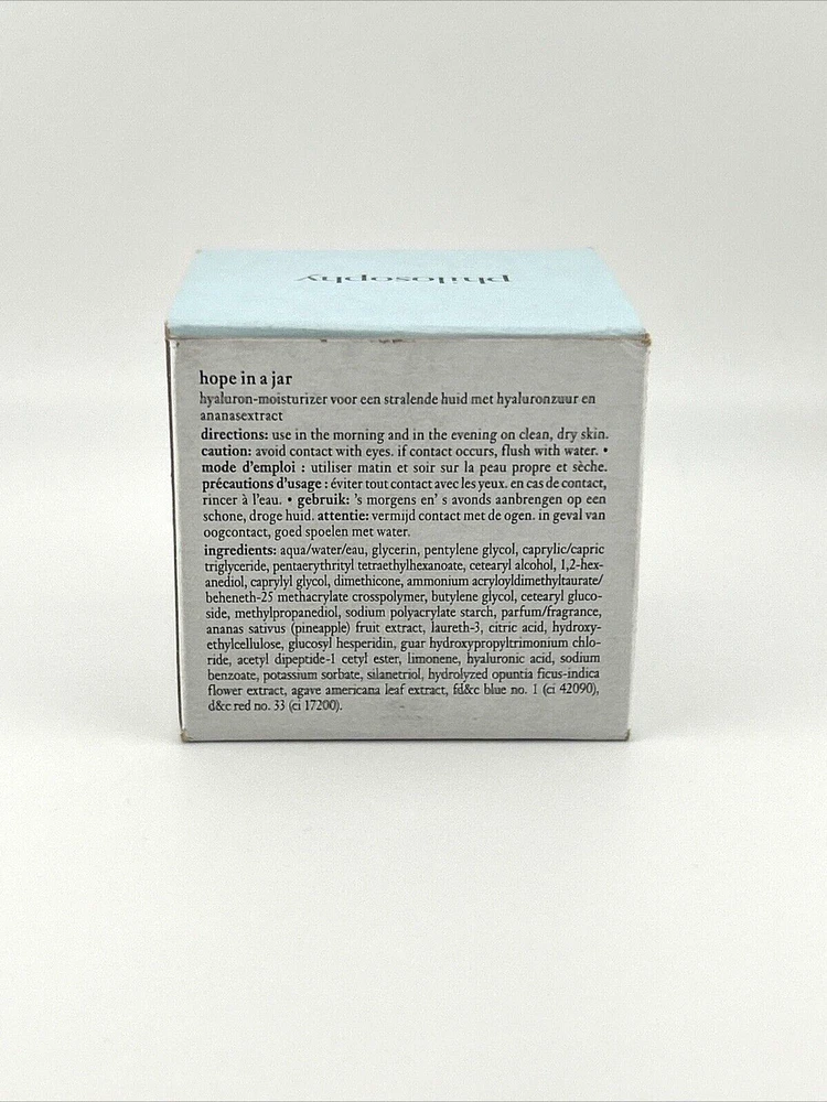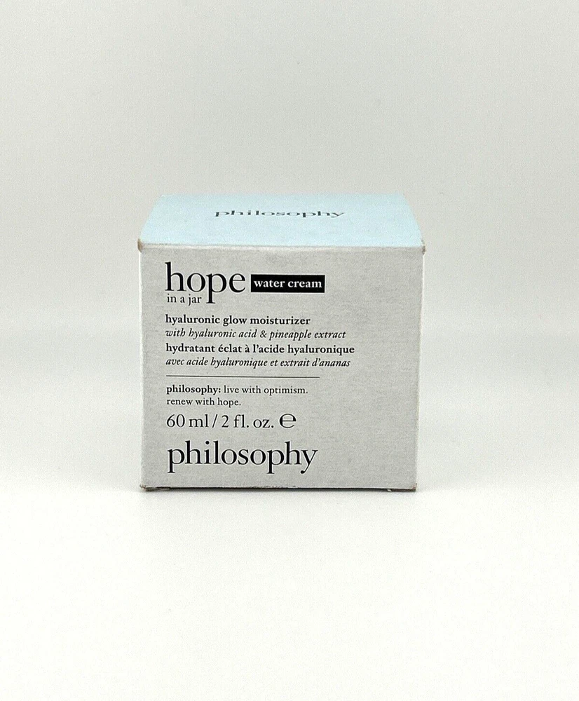 Philosophy Hope in a Jar Water Cream Glow Moisturizer (Pineapple) - 2 oz / 60 ml Get a refreshing burst of hydration with Philosophy Hope in a Jar Water Cream Glow Moisturizer infused with the tropical essence of pineapple. This lightweight water cream is packed with hyaluronic acid, delivering deep hydration that leaves your skin plump, smooth, and glowing. The water-based formula absorbs quickly, giving you long-lasting moisture without any greasy feel, while the pineapple extract adds a touch of brightness to your daily skincare routine. Features: 2 oz / 60 ml jar, perfect for daily use Lightweight, water-based formula for deep hydration Infused with hyaluronic acid and pineapple extract Suitable for all skin types, including oily and combination skin Benefits: Provides intense, long-lasting hydration for a dewy, glowing complexion Absorbs quickly and feels light on the skin without clogging pores Plumps and smooths skin, reducing the appearance of fine lines Refreshing pineapple scent adds a tropical touch to your skincare routine Give your skin the hydration it needs with Philosophy Hope in a Jar Water Cream Glow Moisturizer , and enjoy a radiant, refreshed complexion all day long.