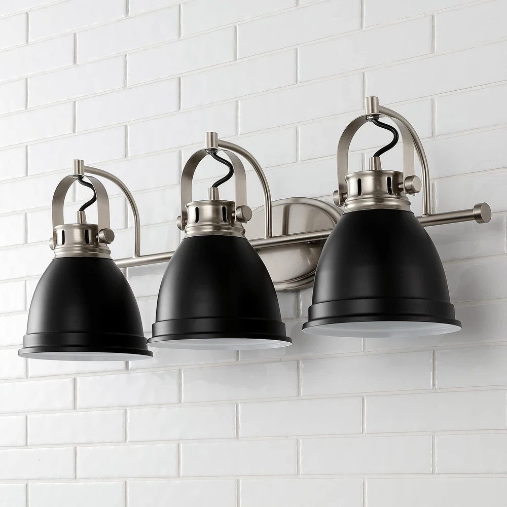The vintage look of this triple wall light makes it perfect for an industrial, farmhouse or coastal interior. A high-quality finish and painted metal shade add low-key cottage style over a bathroom mirror or kitchen sink. The bright LED bulb provides plenty of soft light to warm up your space. QUALITY CONSTRUCTION: Wall light fixtures are used as general lighting; Available in amazing variety; Replacing old, outdated wall lights is a fast and affordable way to update your home design ENERGY-SAVING LED BULBS INCLUDED: LED bulbs are included with every light fixture; All of our lighting is ETL Listed and meets 120-volt UL standards for safety and quality; Professional installation is recommended for all wall light fixtures SATISFACTION GUARANTEED: Every design is created with uncompromising attention to detail, using only the highest quality components; Based in Soho, New York, designer Jonathan and his talented team create affordable high-end home decor Replace outdated wall sconces or vanity lights with this modern classic for an instant vintage-inspired makeover This 3-light fixture is perfect for a single sink in a large bathroom; or use one over each sink on a double vanity.