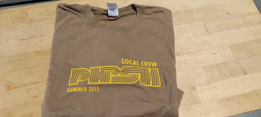 Never worn official PHISH Local Crew t-shirt from the band's 2015 tour. Size is extra large; material is cotton.