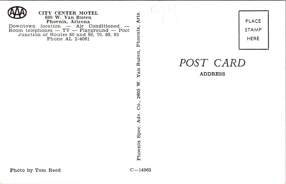 Phoenix Arizona City Center Motel Old Cars Swimming Pool Vintage Postcard 23617