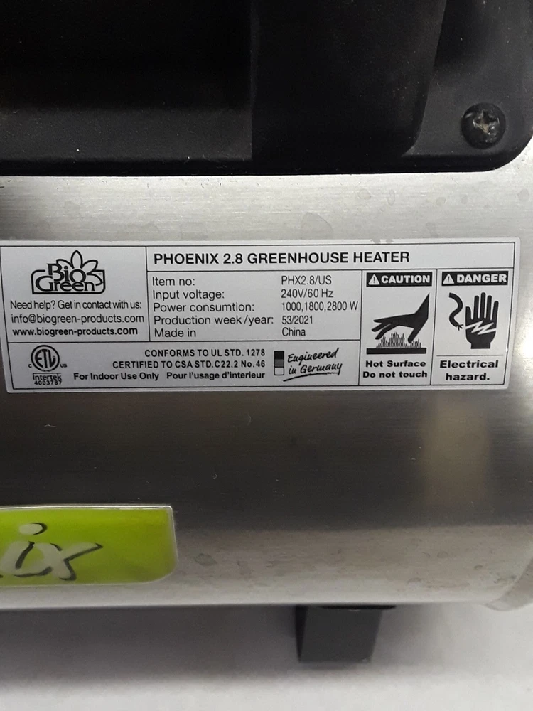 Phoenix Greenhouse Heater & Cooler 2.8kW 240V Like New. Condition is Used. Shipped with USPS Ground Advantage.