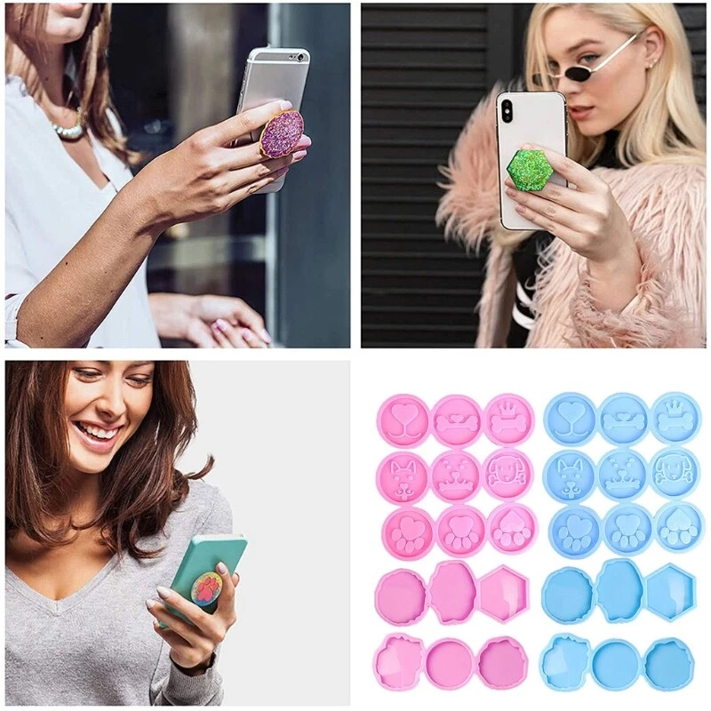 Phone Grip Mold Epoxy Resin On Top 15 Cavity Silicone Irregular Round Molds Phone Grip Mold Epoxy Resin On Top Mold 15 Cavity Silicone Irregular Round Mount Phone Holder Stand Molds Craft Tool Feature: Unique the Phone Socket and Phone Grip are function meets fashion, not only can add bit of glam to your phone but also Release your hands. 360 degree rotation without dead No more worrying about dropping your phone while texting or taking a selfie. gifts: you can use this phone grip resin mold to make delicate handicrafts, and give them to your family, resin lovers and others as a gifts New Year, birthday or anniversary. High silicone material, flexible and reusable, not easy to break or deform. And perfectly for use by both children and adults. DIY: You can use it to make phone grip on top, ornaments, pendants, and add glitter, sequins, resin dyes or other decorations. Enjoy your DIY, looking forward your outcome. Item Type :Mold Designs:Phone Grip Material: Silicone Color Blue Size: More detailed,please see photo. Quantity:1 Set. Note: Size for manual measurement, there may be a 0 to 3mm error, belongs to the normal phenomenon. And due to the difference between different monitors, the picture may not reflect the actual color of the item. Thank you! Package includes: 1 Set/15 Cavityx Phone Grip Mold.