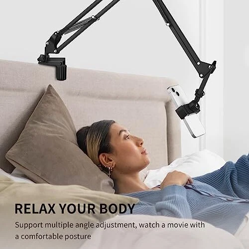 Phone Holder for Desk, Phone Holder for Bed with Adjustable Clamp Clip, Flexible Phone Stand Lazy Bracket Mount Long Arms Clamp for iPhone, Samsung, Google Pixel, Moto (Black)