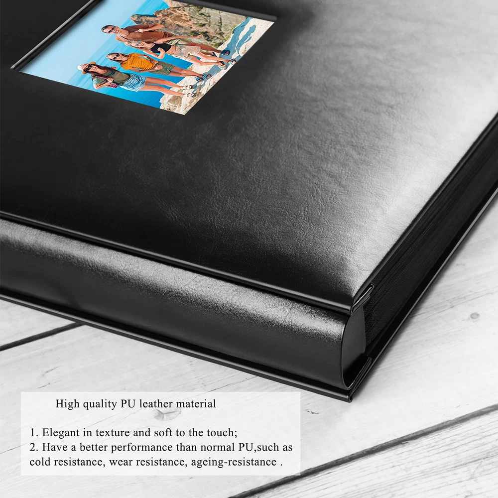 Ideal gift 1.A classic album is a great way to preserve and pass on these family photos. The PU leather photo album is a safe place to keep your photos, even for long term storage. Arrange baby pictures, vacation shots and more in this photo album. These are beautiful pictures and stories that you will be able to pass down generation after generation. 2.It is a durable and attractively designed black photo album that will easily complement any book or album collection and décor. Package Including: 1x Photo Album 9 Pieces Index tabs(1.77 inch) Specifications Capacity: Holds 700 4x6” photos (Each page has 5 pockets to holds 3 horizontal and 2 vertical photos) Cover: PU leather Album size: 13.2*12.3*2.36” (L x W x H) Window size: 3.94X3.94" Weight: 3.44lb Archival, Photo-safe: acid, lignin and PVC free. Advantages: 1.Photo album 4x6 700 photos have a screw binding, they have a classic look and resemble a traditionally bound book. It fits on a standard bookshelf and desk. 2.High-quality leather cover, waterproof, oil-proof, it can protect your photos much well. The PU leather of albums are more environmentally friendly, which is fully comply with international environmental standards 3.Photo pockets are made from clear plastic. It is easy and convenient. You just need to slide the picture into each pocket. 4.Taking ultrasonic imprinting technology, photos repeated insertion will not appear to be separated 5.The index tabs half of the file tabs with self-adhesive and half can be written, repositionable, convenient to stick and mark and remove cleanly. To fine the photos more easily. Note: Fit photo size 4" x 6"(10.2 x 15.2 cm), NOT FIT 4½" x 6"(11.4 x 15.2 cm). Let's take our journey and enjoy, if you have any questions, please us and let us know to make it right for you. 【PLENTY OF ROOM】The photo album measures 13.2*12.3*2.36inches (L x W x H). Weight: 3.44 lb. Album has a total of 70 sheet (140 pages) and holds 3 horizontal and 2 vertical photos per page. It stores up to 700 4x6 pictures. Fit photo size 4" x 6"(10.2 x 15.2 cm), NOT FIT 4½" x 6"(11.4 x 15.2 cm). 【EXQUISITE WORKMANSHIP】The high-quality PU leather hardcover will give you that elegant, classic, nice look. The screw binding made of stainless steel nails, which keeps the pages securely together and do not rust. Your photos will be better protected. This photo album lets you share and cherish your best moments for years to come. 【SAFE AND LONG-TERM PRESERVATION】Archival, Photo-safe: Acid, lignin and PVC free. So they will last for generations to come. The interior is designed with waffle material and high transparent film slots feel a bit delicate, for clear display, good durability and waterproof. High left (2.36”) and low right (1.37”) to make sure close properly after filling full the photos. 【PERFECT GIFT】There is a 3.94X3.94" photo window in front lets you insert a small photo as a cover for a more personalized look. And you can use the index tabs to organize, sort and arrange your photos according to date, themes, events or seasons. The index tabs stick securely but remove easily. Ideal gift for Valentine's Day, Christmas, Anniversary, Mother's Day, Thanksgiving Day, Birthday, Graduation, Wedding and so on. It could also be used as Travel Record, Wedding Album, Baby row Album. 【CUSTOMER SATISFACTION】This is 4x6 photos holds 700 photographs, it will be a perfect photo album for recording your wonderful moments. Please don’t worry, we have checked all the albums before send them out. If you have any questions please feel free to us, we're always here for you. Let's take our journey and enjoy.