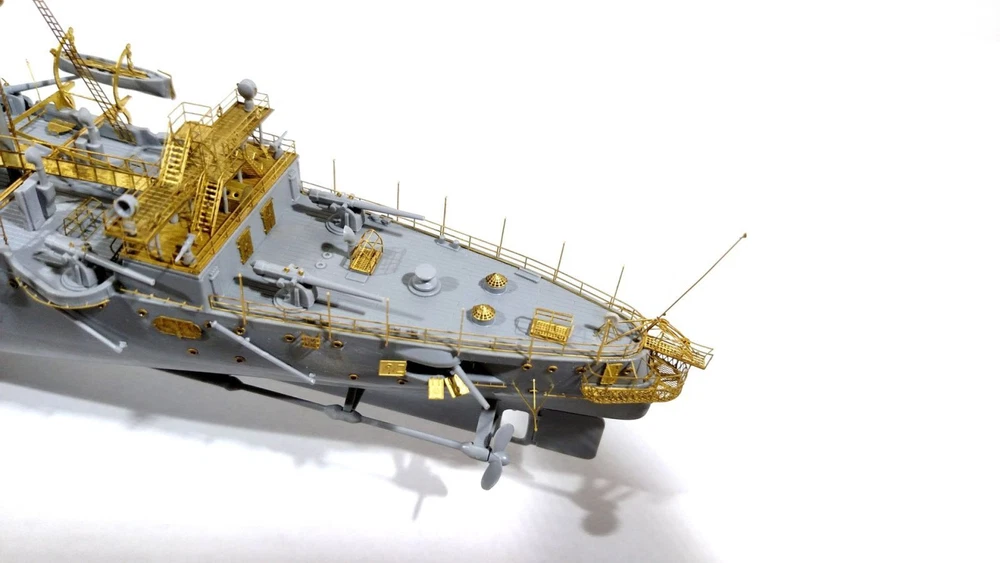 Enhance the realism of your model with high-quality photo-etching from Microdesign! Set Features Manufacturer: Microdesign Compatibility: RIF Cruiser "Varyag" by Zvezda (Art. 9014) Scale: 1:350 Material: Brass sheets, 0.17 and 0.12 mm thick Contents: 4 photo-etching plates Color instruction manual Number of unique parts: 213 pcs Advantages High detail: Add 213 unique parts to your model for maximum accuracy. Quality materials: Brass plates provide durability and ease of use. Easy to use: Step-by-step color instructions help you install all elements effortlessly. Please Note The assembly model is not included. The set provides only photo-etched parts to enhance the cruiser model. Item location: USA. Fast shipping: The item will be shipped immediately after payment. Historical Background of the Cruiser "Varyag" The first-rank cruiser "Varyag" was built in the USA at the William Cramp & Sons shipyard by order of the Russian Imperial Navy and was commissioned in 1901. It became a symbol of heroism due to its participation in the unequal battle at the Korean port of Chemulpo on February 9, 1904, at the beginning of the Russo-Japanese War. Together with the gunboat "Koreets," "Varyag" engaged in battle against superior Japanese naval forces. Despite severe damage and casualties, the crew decided to scuttle the ship to prevent it from falling into enemy hands. The feat of "Varyag" and its crew has forever entered history as an example of courage and self-sacrifice. Order Now! Don't miss the opportunity to turn your model of the cruiser "Varyag" into a true masterpiece. Order the photo-etching set from Microdesign today and give your model unparalleled realism!