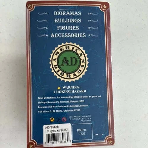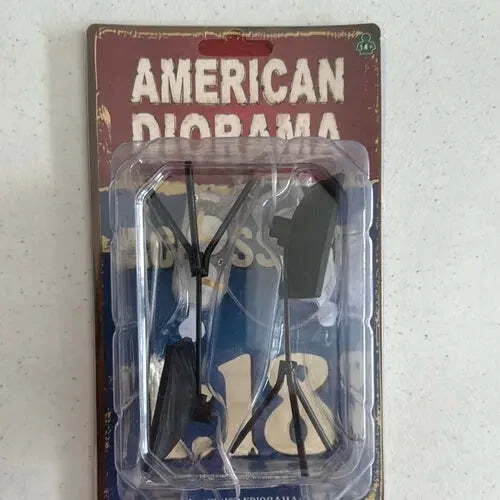 American Diorama Accessories - 1:18 scale Photographer Lighting Kit (Set of 2 lights). Functional, adjust on/off switch to turn on/off the LED light. Batteries Included. This 4.5" tall accessory is great for decorating 1:18 scale cars and dioramas. Manufactured by American Diorama. Individually packed in a blister card. Card size: 5" x 8.5". 12 pcs per inner box. Note: Vehicle is not included.
