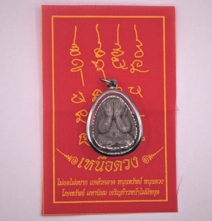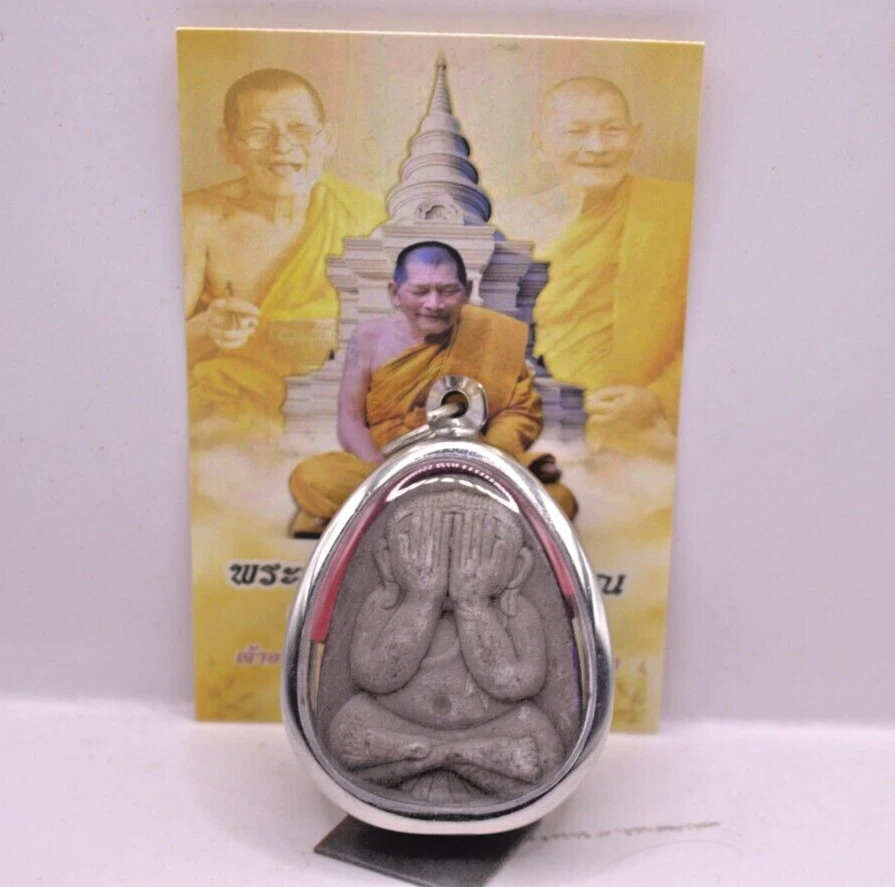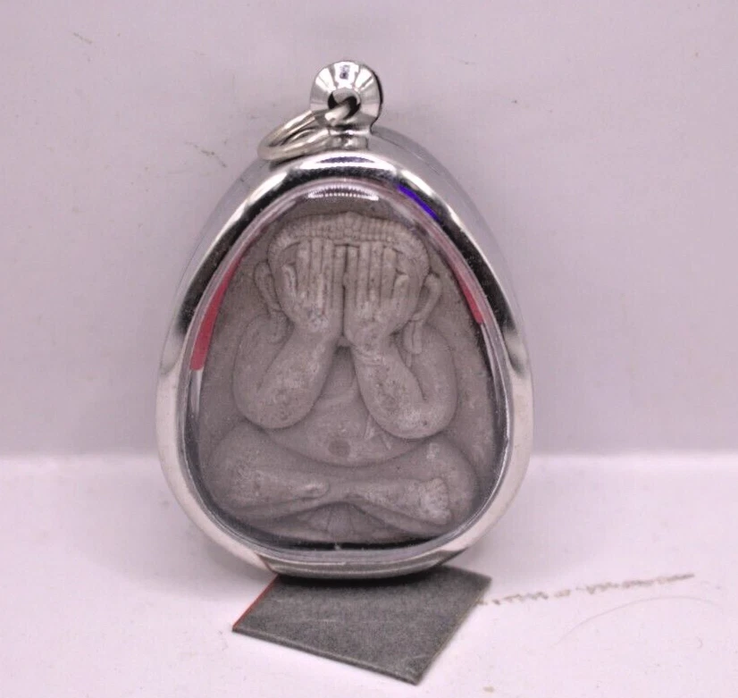Embrace the spiritual essence of Southeast Asia with the Phra Pidta Talisman Pendant, a sacred amulet crafted by the revered Luangpu Maha Sila. This vintage original piece, steeped in tradition and spirituality, is a testament to the rich cultural tapestry of the region. Adorned in an elegant gold hue, the pendant is a blend of mixed materials, reflecting the intricate craftsmanship of its era. Dating back to post-1940, this talisman pendant is not just a piece of jewelry but a symbol of faith and protection. It is an authentic representation of the region's spiritual artistry, designed to carry the positive energies and blessings of Buddha. Whether you're a collector of vintage originals or seeking a meaningful spiritual symbol, this Phra Pidta pendant is a profound choice.