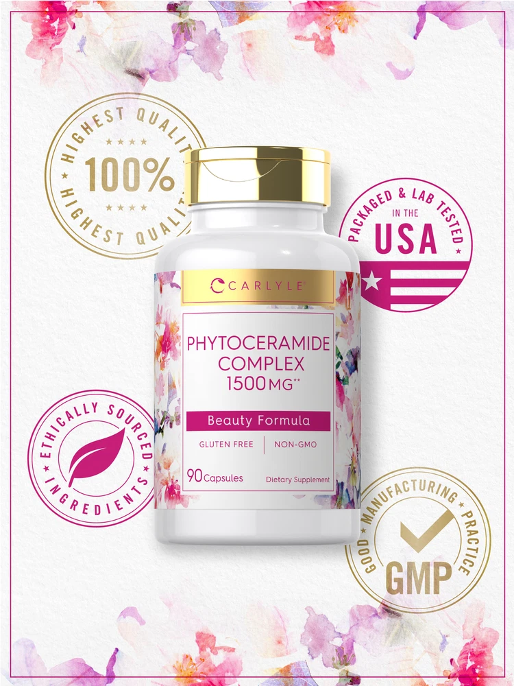 What are Phytoceramides? Phytoceramides are ceramides derived from plants. Ceramides are naturally present in the skin and lock in moisture to help promote skin hydration. A Phytoceramide supplement is key to providing additional support for your beauty routine! Carlyle Phytoceramides Complex: While typically found in skin creams, lotions, and hydration serums, ceramides can also be found in oral supplement forms like powders, organic liquid extracts, or capsules. Carlyle's advanced formula features 1,500 mg Phytoceramide Complex, with naturally occurring Phytoceramides from Konjac Root, Oat Straw, Apple, Spinach, and Sweet Potato. It's gluten free and non-GMO, making it the perfect additiona to any beauty regimen. Rooted in Wellness: Our expertise in sourcing the purest ingredients combined with advanced technologies makes us proud to deliver premium, honest supplements at the best value. Our Phytoceramide Complex is a testament to our commitment to excellence, made with powerful ingredients rooted in wellness. Thanks for choosing us in your pursuit of living healthy!