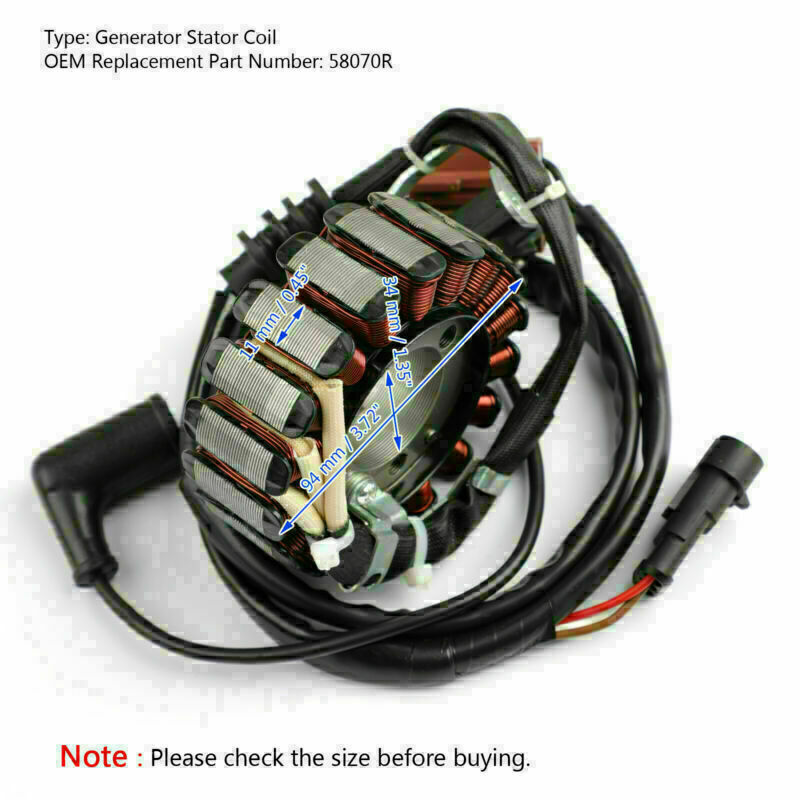 🔥Hot Sale Items On Sale Regulator Magneto Stator Gasket Kit For Kawasaki ZX-9R Ninja ZX 900 2000-2003 V1 88.39 USD Free shipping Stator Regulator Rectifier Gasket Set For Honda VFR800 VFR 800 RC46 2002-2013 V1 109.52 USD 121.69 USD Free shipping 10% off Magneto Stator + Voltage Rectifier +Gasket For Suzuki DR650SE DR650 Se 1996-2019 69.52 USD Free shipping Magneto Stator Pick Up Coil Fits Thruxton \Speedmaster America 900 02-17 T9 65.08 USD Free shipping STATOR BASE FOR KAWASAKI KX 125 KX125M 03-05 GENERATOR 21003-1394 21003-0021 V1 49.63 USD Free shipping Regulator Magneto Stator Coil Gasket Kit For Suzuki GSX GS 450 E S L 80-1988 V1 42.59 USD 47.32 USD Free shipping 10% off Regulator Magneto Stator Gasket Kit For Suzuki SV 650 / A 03-12 SV 650 S 03-2007 79.55 USD 88.39 USD Free shipping 10% off Magneto Stator Generator Flywheel Rotor For Yamaha FZ1 2006-15 2SH-81450-00-00 V 58.57 USD 65.08 USD Free shipping 10% off Magneto Stator+Voltage Rectifier+Gasket For Kawasaki Ninja ZX9R ZX-9R 1998 99 V1 63.63 USD Free shipping Regulator Magneto Stator Coil Gasket Kit For Honda CRF 250 X ME11 2004 - 2019 V1 89.54 USD 99.49 USD Free shipping 10% off Generator Stator Regulator & Gasket For Kawasaki GPz KZ1100 LTD Spectre 81-83 V1 62.57 USD 69.52 USD Free shipping 10% off Magneto Stator+Voltage Rectifier+Gasket For Kawasaki 17-21 Z650 Ninja/Versys 650 75.63 USD Free shipping SAFE & SECURE SHOPPING 100% SATISFACTION GUARANTEED FAST SHIPPING Store Categories Store Categories Other 🔥US Hot Sale Fairings🏍️ CN Fairing Kit US HOT SALE NEW ARRIVAL Magneto Generator Stator Coil 58070R For Piaggio MP3 125 250 Hybrid 125 06-10 V1 Product Description UNIVERSAL GENERATOR MAGNETO STATOR COIL FOR APRILIA DERBI GILERA PIAGGIO FEATURES: Direct replacement to your original unit Plug-and-play, direct fit, easy installation. Highest grade lamination materials Highest grade copper windings, resistant to 200 degrees Celsius. Pick up pulsar coil included Connector included All products shipped are tested SPECIFICATIONS: Condition: Aftermarket 100% Brand New Quanity: 1PC Type: Generator Stator Coil OEM Replacement Part Number: 58070R Dimensions : Interior diameter : 34 mm / 1.35" Exterior diameter : 94 mm / 3.72" Thickness : 11 mm / 0.45" Other specifications : Number of wires : 6 Number of pins : 7 Number of plugs : 3 Number of fixation holes: 3 FITMENT: Fits Aprilia SR300 Max 300 2011-2014 Fits Aprilia Atlantic 250 2007-2009 Fits Aprilia Atlantic 125 2006-2010 Fits Aprilia Sport city 250 2007-2008 Fits Aprilia Sport city 200 2007-2008 Fits Aprilia Sport city 125 2007-2008 Fits Aprilia Sport City Cube IE 250-300 E3 2008-2012 Fits Aprilia SR125 Max 125 2011-2014 Fits Aprilia Scarabeo 250 2006-2010 Fits Aprilia Scarabeo 300 2009-2010 Fits Derbi GP1 250 2007-2008 Fits Derbi Rambla 125 2008-2014 Fits Derbi Rambla 250i 2008-2010 Fits Gilera Nexus 250 2007-2008 Fits Gilera Nexus 250 SP E3 2006-2007 Fits Gilera Nexus 300 2009-2014 Fits Gilera Nexus 125 2007-2014 Fits Piaggio Beverly Cruiser 250 E3 2007-2009 Fits Piaggio Beverly 250 E3 2007 Fits Piaggio Beverly 250 es decir E3 2006-2008 Fits Piaggio Beverly 250 es decir deporte E3 2006-2008 Fits Piaggio Beverly Tourer 250 E3 2007-2009 Fits Piaggio BV250 2007-2008 (USA) Fits Piaggio BV250 Tourer 250 2008 (Estados Unidos) Fits Piaggio Beverly 300 Tourer E3 2009 Fits Piaggio BV300 ie Tourer 2009-2011 (USA) Fits Piaggio Carnaby 250 2008 Fits Piaggio Carnaby 300 2009-2012 Fits Piaggio MP3 Hybrid 125 2009 Fits Piaggio MP3 125 2008-2009 Fits Piaggio MP3 250 2006-2010 Fits Piaggio X7 250 2008 Fits Piaggio X8 250 2005-2008 Fits Piaggio XEvo 250 2007-2016 Fits Piaggio Vespa GTS250 2005-2009 Fits Piaggio Vespa GTS300 Super 300 2009-2013 Fits Piaggio Vespa GTV250 2006-2009 Fits Malaguti Madison 3 250 2008-2012 Fits Peugeot Geopolis 250 2006-2011 Fits Peugeot Satelis 250 2006-2012 PACKAGE INCLUDED: 1x Generator Stator Coil NOTICE: Before installing your new stator Check the AC output of the stator. Replace any burned or corroded connectors on stator and regulator/rectifier Check and repair any melted wiring. Use hi-temp dielectric grease on all connectors Our stator may use a different wire color code than your original. All of the wires are installed in the correct order; please do not change any of the wiring configurations. This stator is designed as a direct plug-in replacement and should be used as such. When bolting stator in, always use locking compound. If our stator includes a pickup coil, always make sure the air gap is correct upon installation. All item pictures are accurate; if in doubt do not hesitate to compare our item to your original part. NOTE: To ensure you have 100% satisfied shopping experience, please check the Specification and Description and Pictures all carefully to make sure the product are the same with what you want before purchasing. Thanks for your cooperation! About Us Shipping Terms Returns Contact Us About Us About Item All items sold by us are being described to the best of our abilities, as accurate as possible, and with utmost conscientiousness on our part. However, to avoid any potential oversights, I respectfully request your assistance in helping us to make this a mutually satisfactory transaction by THOROUGHLY reviewing item description and photos, and asking all questions PRIOR TO BIDDING. Customer Satisfactory 1.We back our commitment with superb service, 100% full money back and a customer satisfaction guarantee. 2.I am here and ready to assist you with any questions or concerns you might have before or after the purchase. 3.My goal is to make sure you are a happy customer and pleasant shopping with us. Feedback If you are satisfied with the purchase and our total service, your comment is very important in our business success. Please take a minute to leave us a positive feedback with an overall Detailed Selling Rating (DSR) of 5. Our eBay account setup auto feedback, so eBay system gives you automatically Positive feedback back after 