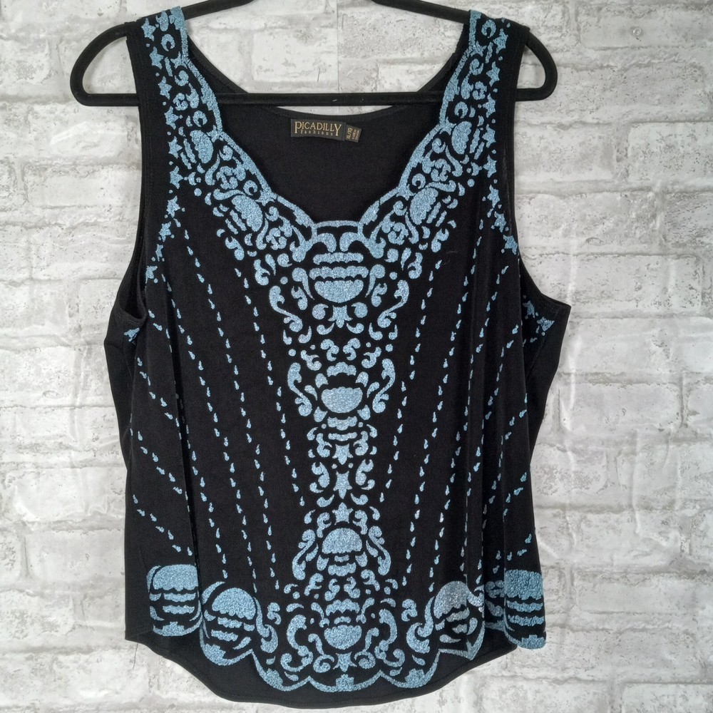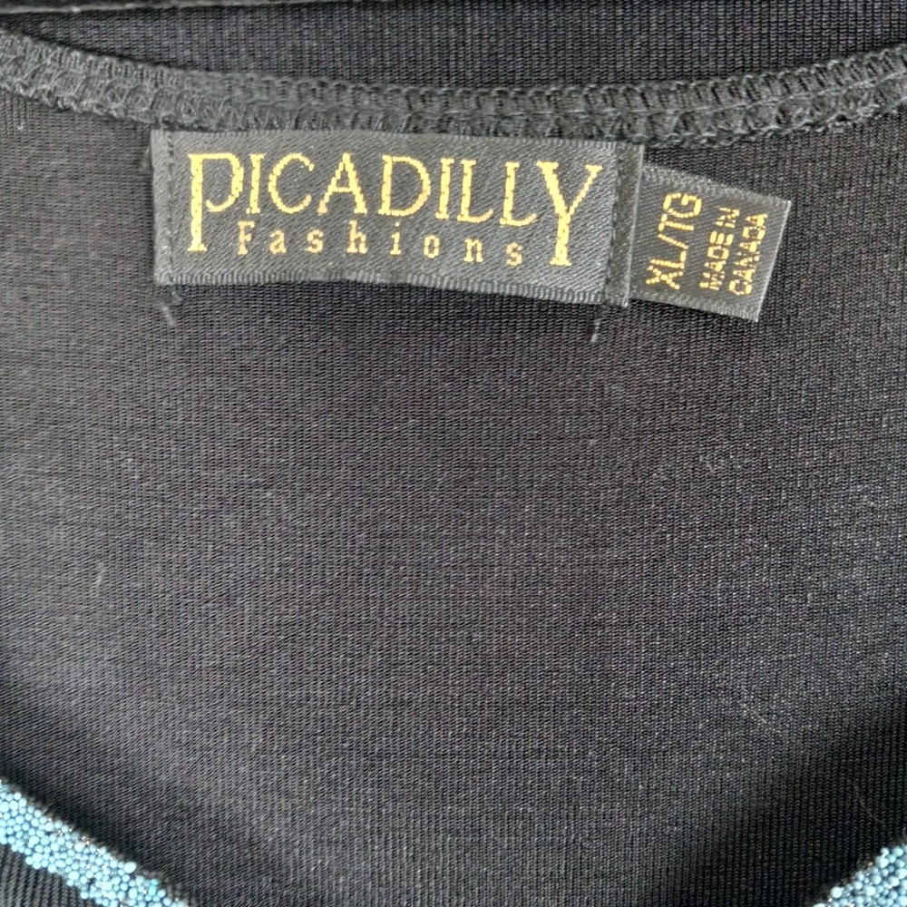 Garment Care: Machine Washable Closure: Pullover Material: Acetate, Spandex Vintage: Yes Type: Outfit/Set Size: XL Set Includes: Jacket, Tank Country of Origin: Canada Occasion: Christening, Formal, Party/Cocktail Season: Fall, Spring, Summer, Winter Color: Black Number of Pieces: 2 Piece Department: Women Fabric Type: Blended Fabric Fit: Classic Size Type: Regular Theme: Classic, dressy, cocktails Brand: Picadilly Accents: Beaded Features: All Seasons, Stretch Sleeve Length: Long Sleeve