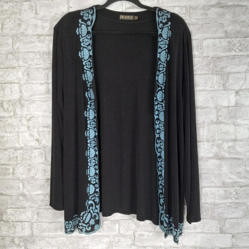 Picadilly Cardigan Jacket Set XL Black Slinky Beaded Cocktail Evening