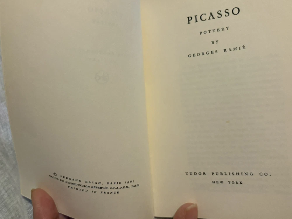 Van Gough Arles Saint Remy 1956 Cezanne Landscapes 1958 Picasso Papiers Colles 1960 Gris Still Life 1961 Bernard Buffet Paris 1961 Picasso Pottery 1962 Fernand Hazan Printed in France The product is a vintage book titled "Picasso" by Fernand Hazan, published in 1962 by Tudor Publishing. The book, written in English, focuses on the life and work of the artist Picasso, providing insights into his art and culture. The book is a valuable addition to any art enthusiast's collection, offering a deep dive into the art history and pottery techniques of the renowned French artist.