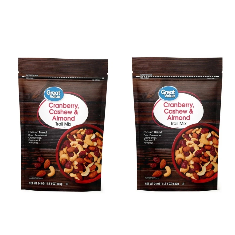 The Great Value Trail Mix 22 to 26 oz Bags offer delicious and convenient savory snacks for on-the-go enjoyment. With a variety of nuts, seeds, and dried fruits, each serving provides a satisfying blend of flavors and textures. These pantry staples are perfect for those looking for a quick and easy snack to munch on while traveling or engaging in outdoor activities.