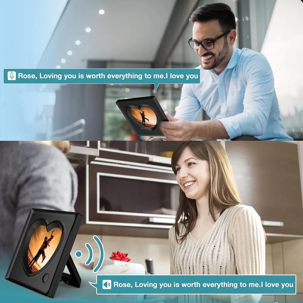 A TALKING PICTURE FRAME- What can be a better gift than A Talking Picture Frame that captures your best moments with your loved ones? Built-in voice recorder allows you to record up to a 20 second message. Surprise your family and friends with a lovely and truly momentous memory, finely engraved in Voice Recordable Picture Frame. HOW TO USE- Put 3 x AAA batteries (NOT INCLUDED) in the battery tank. Press and hole the REC button of the back, when LED lights up, speak Clearly into the microphone. The red LED light will automatically turn off when up to 20 seconds. If you make a mistake, the voice message can be cleared and re-recorded. Press the button of the front, the recorded voice will play. ECO-FRIENDLY- ABS material are recycled. No trees were harmed in the marking of these photo frames. Cute designed frame with amazing durability. Comes with easy opening tabs at the back for easy access. The crystal clear PVC front will protect your picture and give a clear view of your picture and preserves the life of your photo. Extremely carefully packaged to ensure it arrives safely! PERFECT SIZE- The picture frame fits 3.9 x 3.9 inch photos. The frame size is 5.5*5.5.It is perfect for your office desk, night table, tabletop, office desk, coffee table, bookshelf or wall shelf. Easily catching a happy memory. GREAT GIFTS- The small photo frame with personalized voice. It’s use as family picture frame, baby photo frame, dog picture frame. It is a great gifts for birthday, wedding gift, memorial, mothers day gifts, father's day gifts, valentine's gifts, teacher appreciation gifts, graduation gifts, christmas gifts. Product Description Picture Frame with Personalized Voice 20S Create your own decorative set to display your most memorable moments! KWANWA collects these wonderful moments and beautiful voice of life together with you,, and keeps them forever, which is the perfect addition to any home & office decor It's more than a gift, it's your love. KWANWA Recordable Voice Picture Frames. Up to 20 seconds voice-recordable picture photo frame, click the play button to play the recorded sound, the sound is loud and realistic, permanently saved. Recorded voice message can be kept even if the batteries were dead or take out the batteries. You can re-record message by repeating the recording steps.( NOTE: The previous message will be erased automatically after re-record a new message.) Life is colorful and recordable.