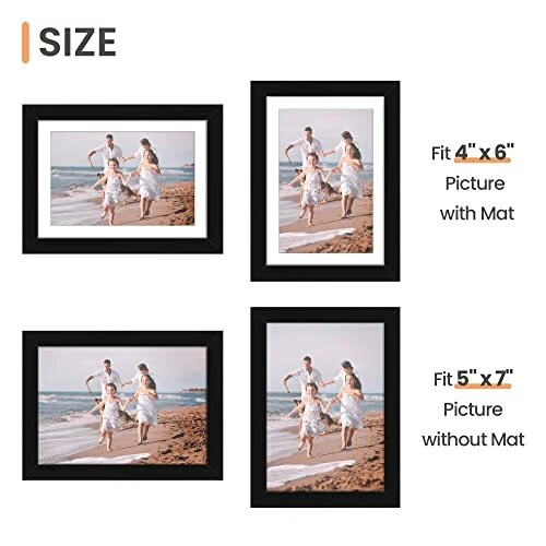 30 Days Return Policy Fast Delivery Trusted seller 5x7 Picture Frame Set of 10, 4x6 with Mat or 5x7 Without Mat, Multi Photo Frames Collage for Wall or Tabletop Display, Black Product Description MULTIPLE FRAMES & STURDY MATERIAL: Bulk of 10 pieces 5x7 picture frame set in the same size. These frames are light but firm and come with high definition acrylic to protect your picture. SIZE: These frames 5x7 are designed to fit a 4x6 photo with mat. If you remove the mat, it can fit a 5x7 photo. Mat opening is designed slightly smaller than photo itself in order to hold it strongly. It's not a defect. EASY MOUNTING & PRATICAL: The spring type action on the back of the frame is easy to open and you can load your pictures quickly. Perfect decoration and great gift for festival and best friend's birthday. VERSATILE DISPLAY: You can use this 5x7 frame in various ways like hanging it horizontally or vertically on the wall and also can be used to place on the table. Hanging hardware and non-trace nails are included. PROTECTIVE PACKING: Frames are wrapped very carefully to ensure safe shipping. Don't have to worry about receiving damaged products. Shipping Returns Payment Shipping Shipping is FREE to all addresses other than APO/PO boxes in the lower 48 states. All our stock ships from US-based warehouses. Shipped via USPS or UPS (depending on location and package weight) Unless stated otherwise, all orders will ship within 24-72 hours of your payment being processed. Check our feedback to see the great reviews of FAST shipping we offer. Returns As our valued customer, we will do our best to make sure the product you receive arrives to you on time and as expected. If you are not satisfied with your purchase, please contact us within 30 days of receiving your order to process a return. Payment We currently accept payment via eBay managed payments only. Once payment is cleared, we will dispatch your shipment within 1-3 business days. Please refer to the "Shipping" tab for more information regarding shipping speed to your destination.