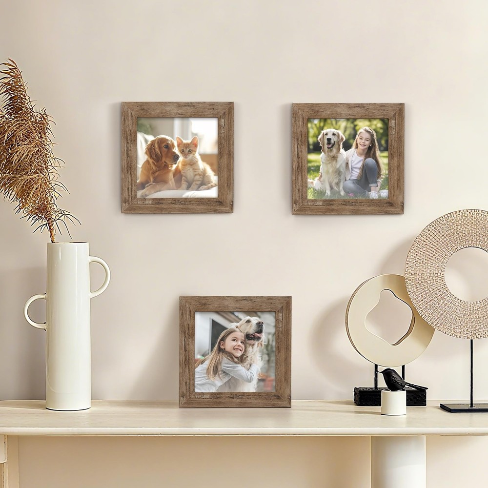 Picture Frames 4x4 Set of 2 Rustic Wood Grain Photo Frame for Gallery Wall Mounting or Tabletop Display Product Details Color: Rustic Wood Size: 4x4 Brand: TOFOREVO MPN: TF-XL-2pcsS4inFrameRB-XK99 UPC: Does not apply EAN: Does not apply Brand: TOFOREVO Color: Rustic Wood Product Dimensions: 4"L x 4"W Shape: Square Mounting Type: Freestanding Frame Material: Engineered Wood Finish Type: Distressed Style: Rustic Theme: Wood Occasion: Grandparents Day, New Year, Retirement Brand: TOFOREVO Color: Rustic Wood Product Dimensions: 4"L x 4"W Shape: Square Mounting Type: Freestanding Frame Material: Engineered Wood Finish Type: Distressed Style: Rustic Theme: Wood Occasion: Grandparents Day, New Year, Retirement Special Feature: Easel Back Number of Items: 2 Orientation: Vertical Target Audience: Unisex Adult Cover Material: Polyvinyl Chloride (PVC) Item Weight: 0.24 Kilograms Back Material Type: Medium Density Fiberboard Unit Count: 2.0 Count Included Components: 2 Picture Frames Recommended Uses For Product: Wall Display, Tabletop Display, Gifting for Occasions Size: 4x4 Item Weight: 8.4 ounces Item model number: TF-XL-2pcsS4inFrameRB-XK99 Finish types: Distressed Batteries required: No 4x4 Picture Frame: 2 Pack Rustic Wood Grain Square 4x4 Picture Frames, finished with a rustic style accents. Giving you the distressed look. It's great for wall or farmhouse decor. Material: Made of sturdy MDF wood, not easy to deform, no smell. And come with high definition organic glass(polymethyl methacrylate ), Shatterproof, Durability and Not fragile. Use and Display: Backing fixed with 4 360 metal tabs. Easy to put photos in. Stands up well and not wobbly. Wall mountable display horizontally or vertically. Nice decor. on the shelf or blank wall. Perfect Design: Great for displaying photos that something means so much, and can look at everyday! Also a excllent gifting to somebody. Well to decorate room with. Protective Packing : Well packaging that helps ensure safe delivery. For personal use or as a gift to friends. Hurry to click and add to your cart for your good memories.
