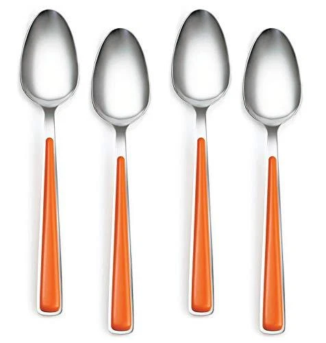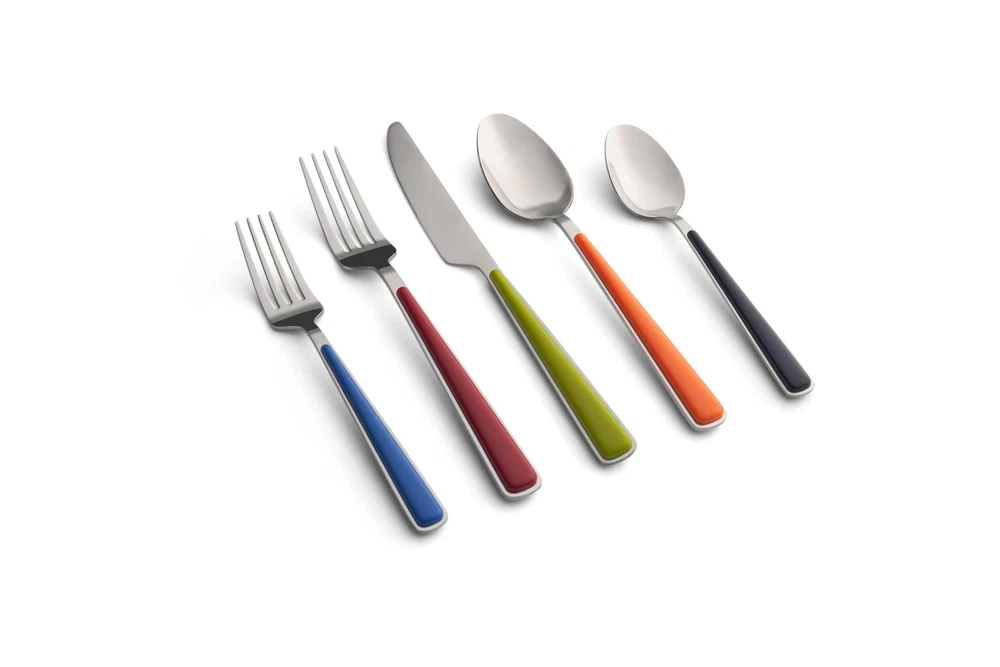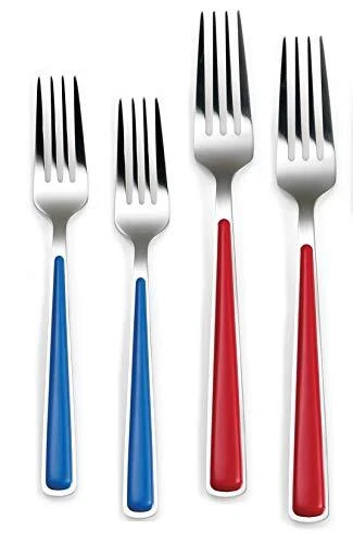 Celebrate with color! The radiant Merengue 20-piece flatware set makes your tabletop party-perfect in an instant. Match it up with all your pieces for an irresistible spread. SILVERWARE SET INCLUDES: 4 lapis salad forks; 4 scarlet dinner forks; 4 lemongrass dinner knives; 4 tangerine dinner spoons; 4 cobalt teaspoons STAINLESS STEEL AND ABS: Made of durable 18/0 stainless steel heads with ABS plastic handles. This silverware set is built to last NEVER NEEDS POLISHING: It will come out of the dishwasher good as new for many years DISHWASHER SAFE: This silverware set is safe in the dishwasher for years to come Included components: 4 salad forks; 4 dinner forks; 4 dinner knives; 4 dinner spoons; 4 teaspoons