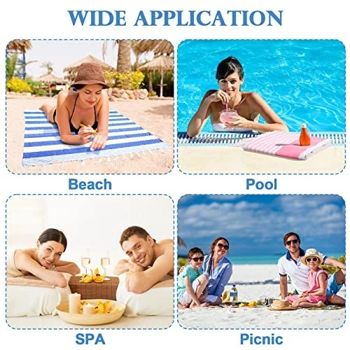 Return Policy Fast Delivery Trusted seller 10 Pieces Turkish Beach Towels 39 x 71 Inch Large Pool Towels Quick Dry Sand Free Absorbent Cotton Travel Washrag for Bath Hotel Beach (Cute Color) Product Description 10 Pieces Beach Towels: the package includes 10 pieces of Turkish beach towels feature 5 different colors, pink, blue, purple, orange and gray, 2 of each color, enough quantity will meet your using needs and replacements, the eye catching color will make it easy to stand out on the beach Soft and Comfortable: the beach towels are made of polyester cotton, which is soft and comfortable; The beach towels feature high water absorption and quick drying, making them less prone to annoying smells, and pre washed to prevent shrinkage Widely Application: these Turkish cotton towels can be taken to the beach, pool, gym, bathroom, use for relaxing during vacation, work well as bath towels, pool towels, swimming towels, picnic blanket, shawls, pareo, sofa blankets, yoga blankets and so on Large Size: the Turkish pool towels measure 71" x 39", large size for both women and man, and they are lightweight and portable, can be folded in suitcase when traveling, and easy to stack on small bathroom display shelves or hang on wall hooks Warm Tips to Care: the Turkish bath towels are machine washable, tumble dry low or air dry; Remove from the dryer as soon as beach towels are dry; Do not bleach or iron; Care for your beach towels properly, they will serve you longer Shipping Returns Payment Shipping Shipping is FREE to all addresses other than APO/PO boxes in the lower 48 states. All our stock ships from US-based warehouses. Shipped via USPS or UPS (depending on location and package weight) Unless stated otherwise, all orders will ship within 24-72 hours of your payment being processed. Check our feedback to see the great reviews of FAST shipping we offer. Returns Seller does not accept returns Payment We currently accept payment via eBay managed payments only. Once payment is cleared, we will dispatch your shipment within 1-3 business days. Please refer to the "Shipping" tab for more information regarding shipping speed to your destination.