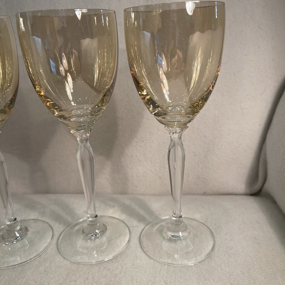 Pier 1 Amber Iridescent Wine Glasses with Clear Stem 6oz Set of 3 Blown Glass
