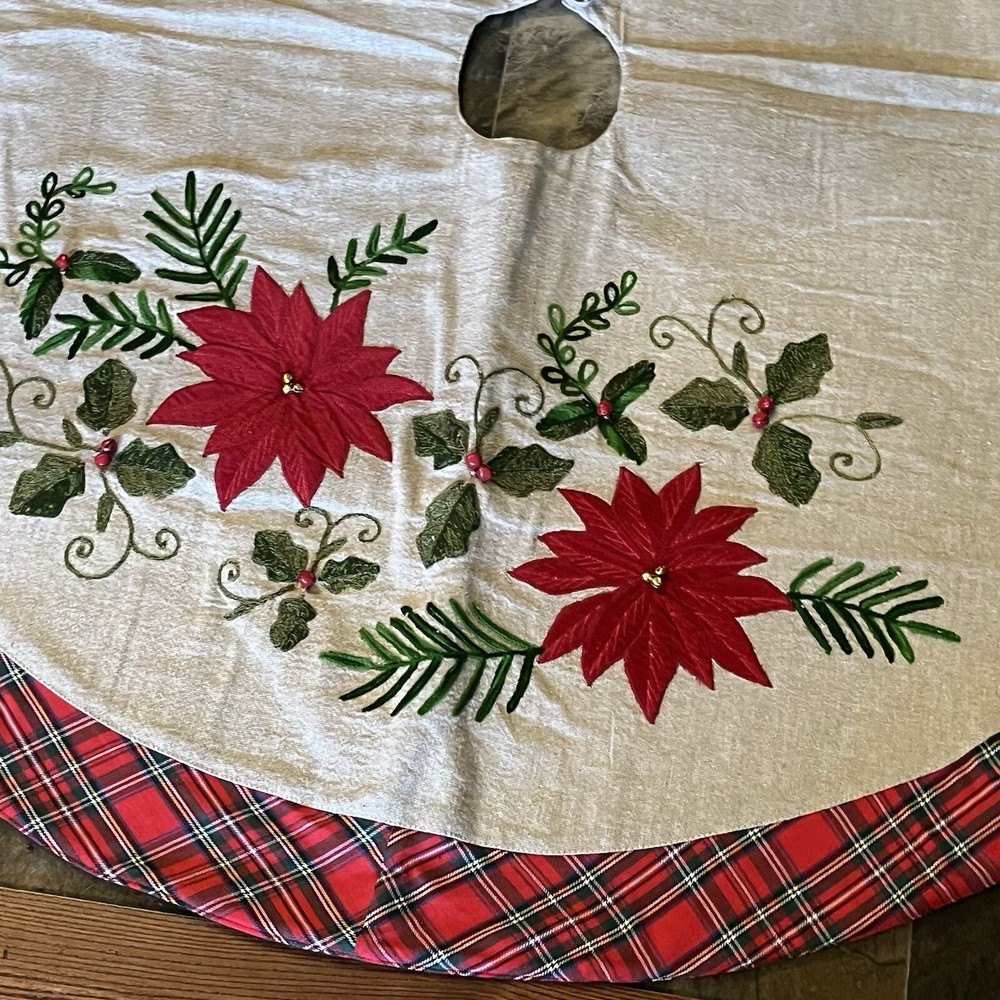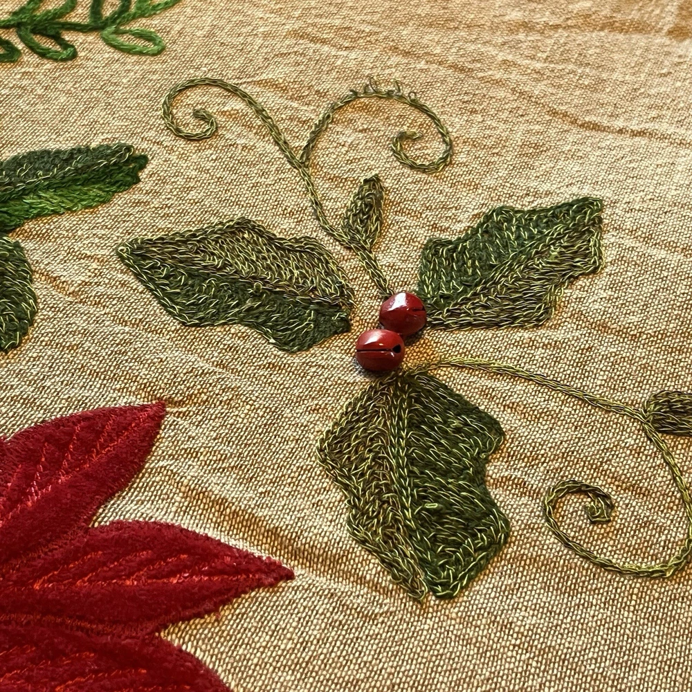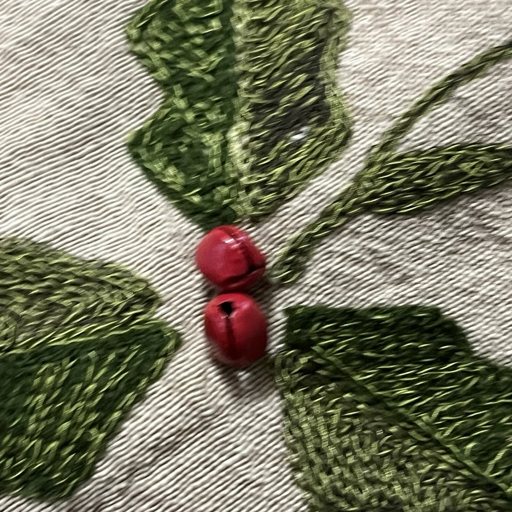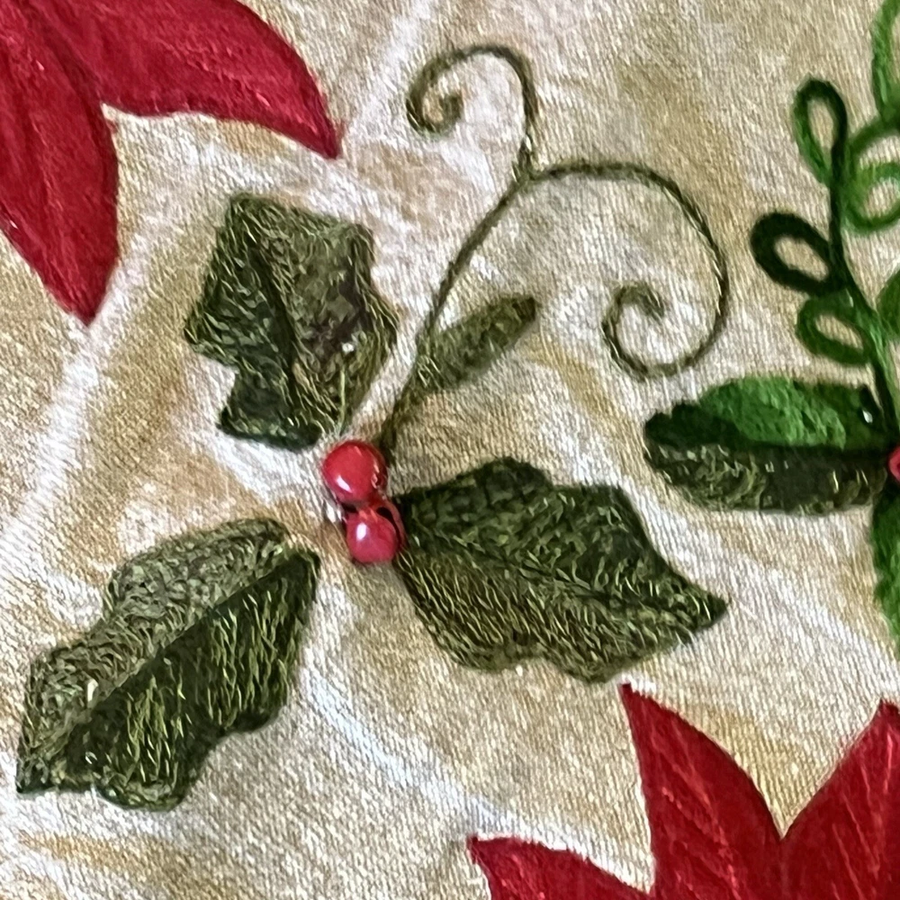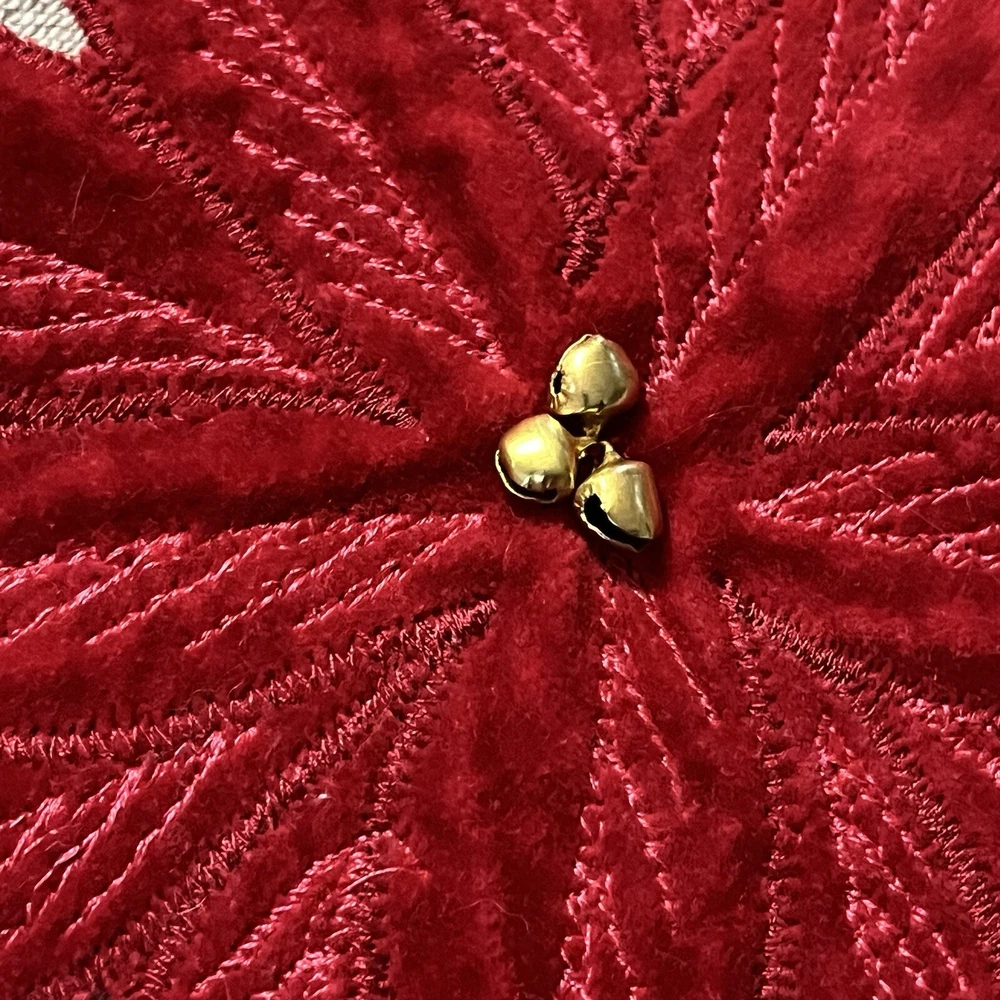 Red And Green Velvet Tree Skirt With Sequence Holly Leaves