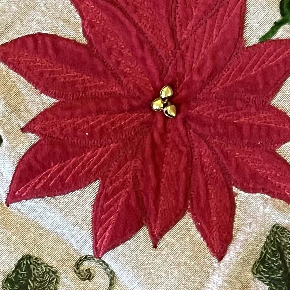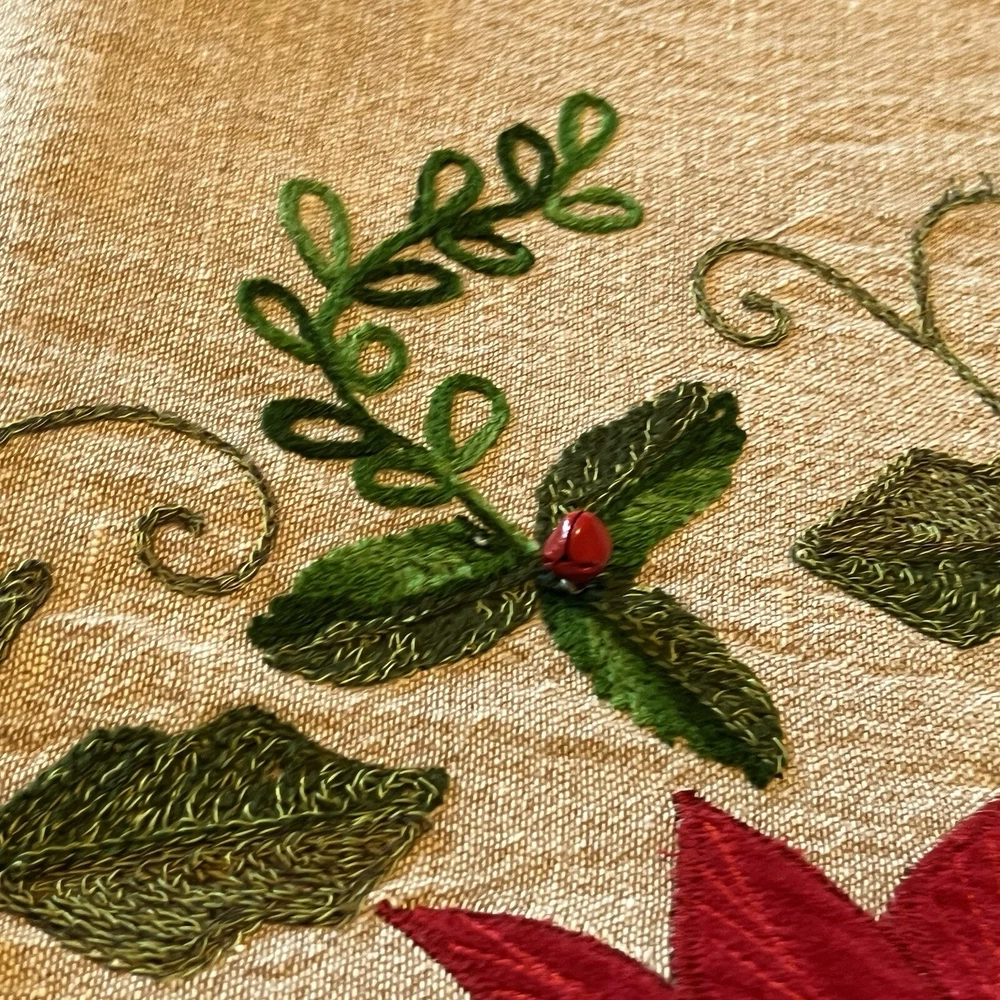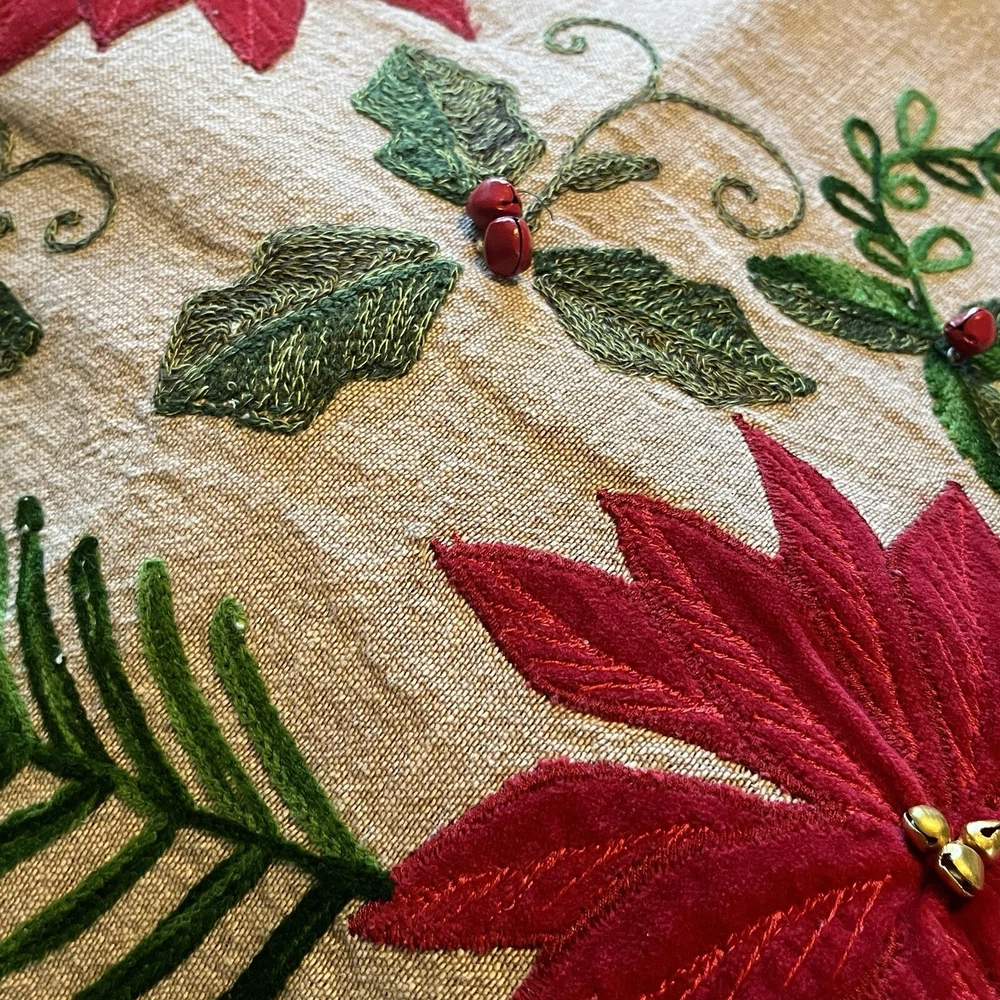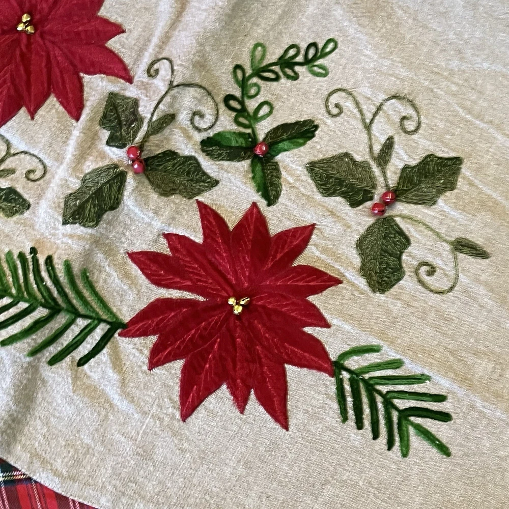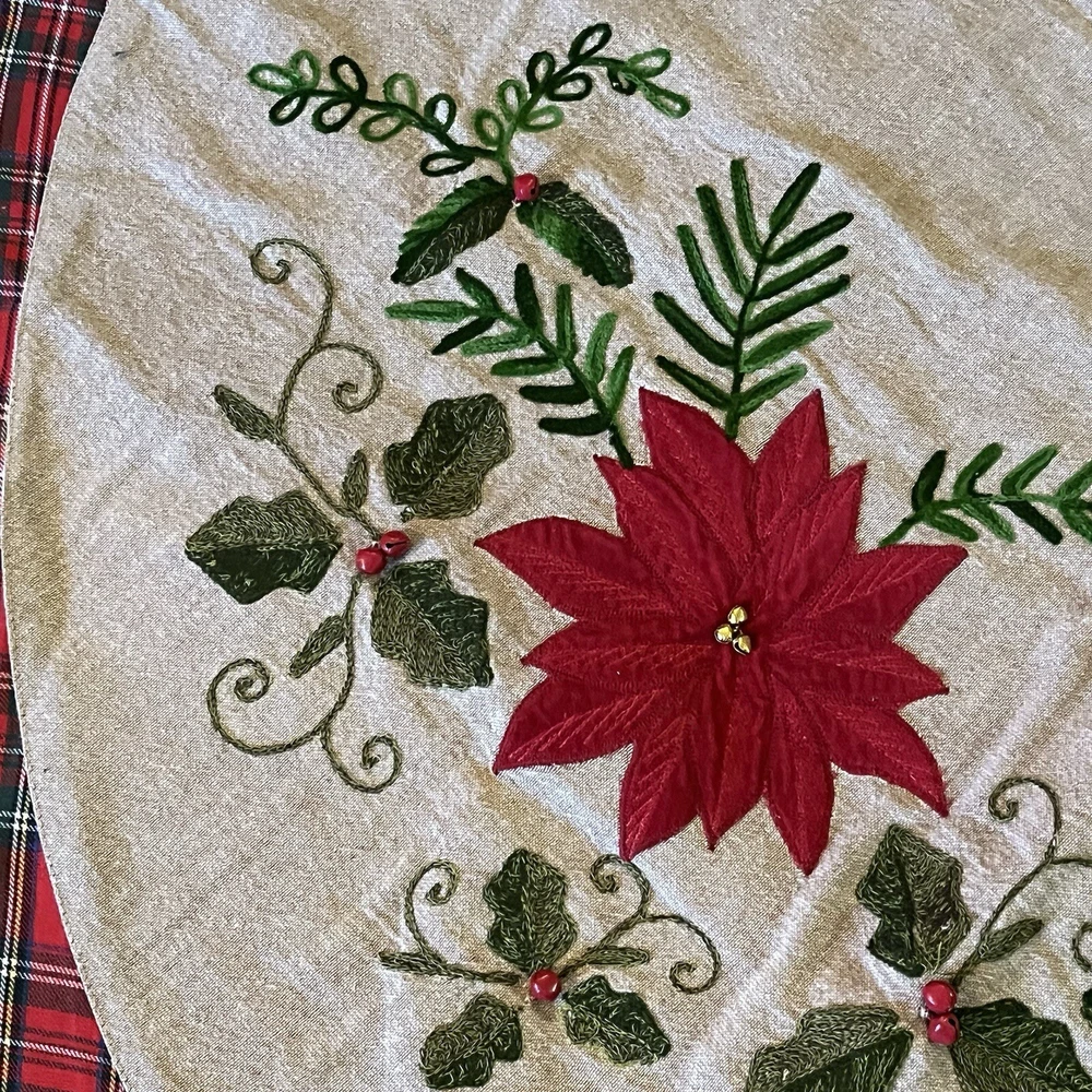 Red And Green Velvet Tree Skirt With Sequence Holly Leaves